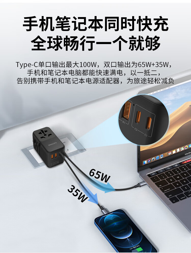 필립스 변환 플러그 글로벌 범용 100W 질화갈륨 무선 다기능 국제 여행용 소켓스토어 가기