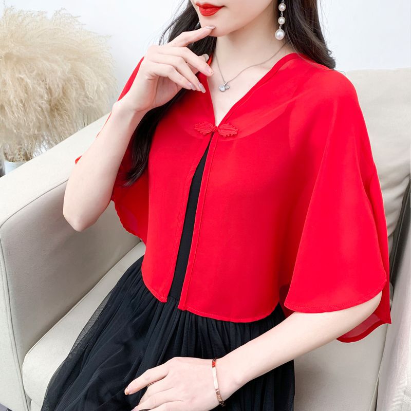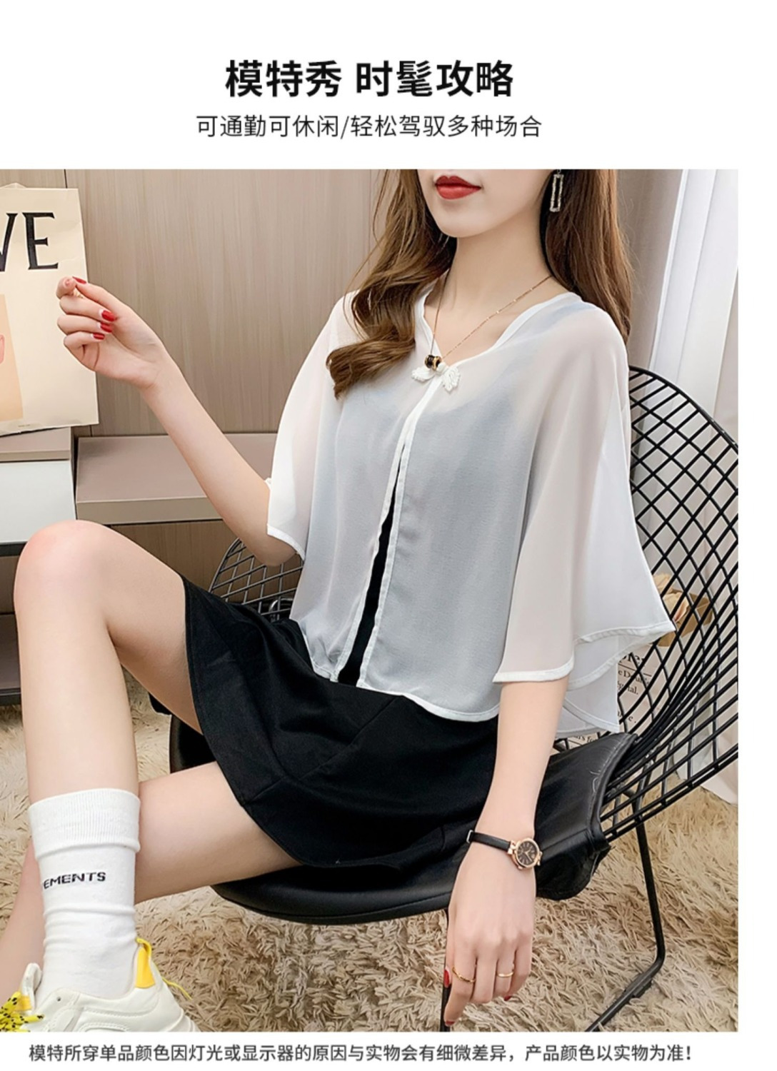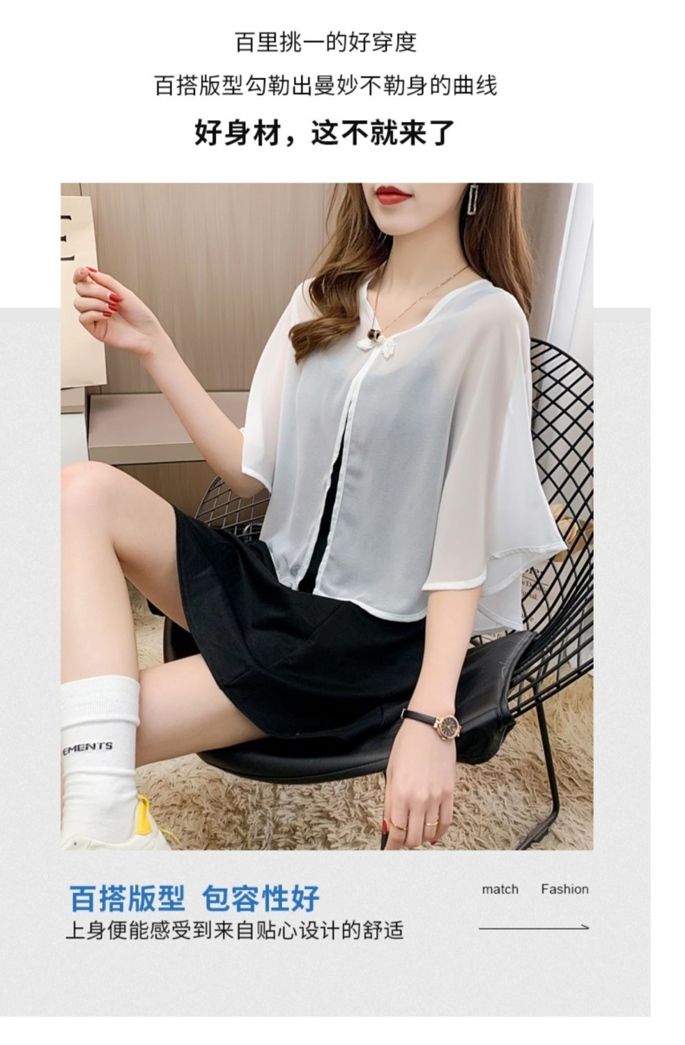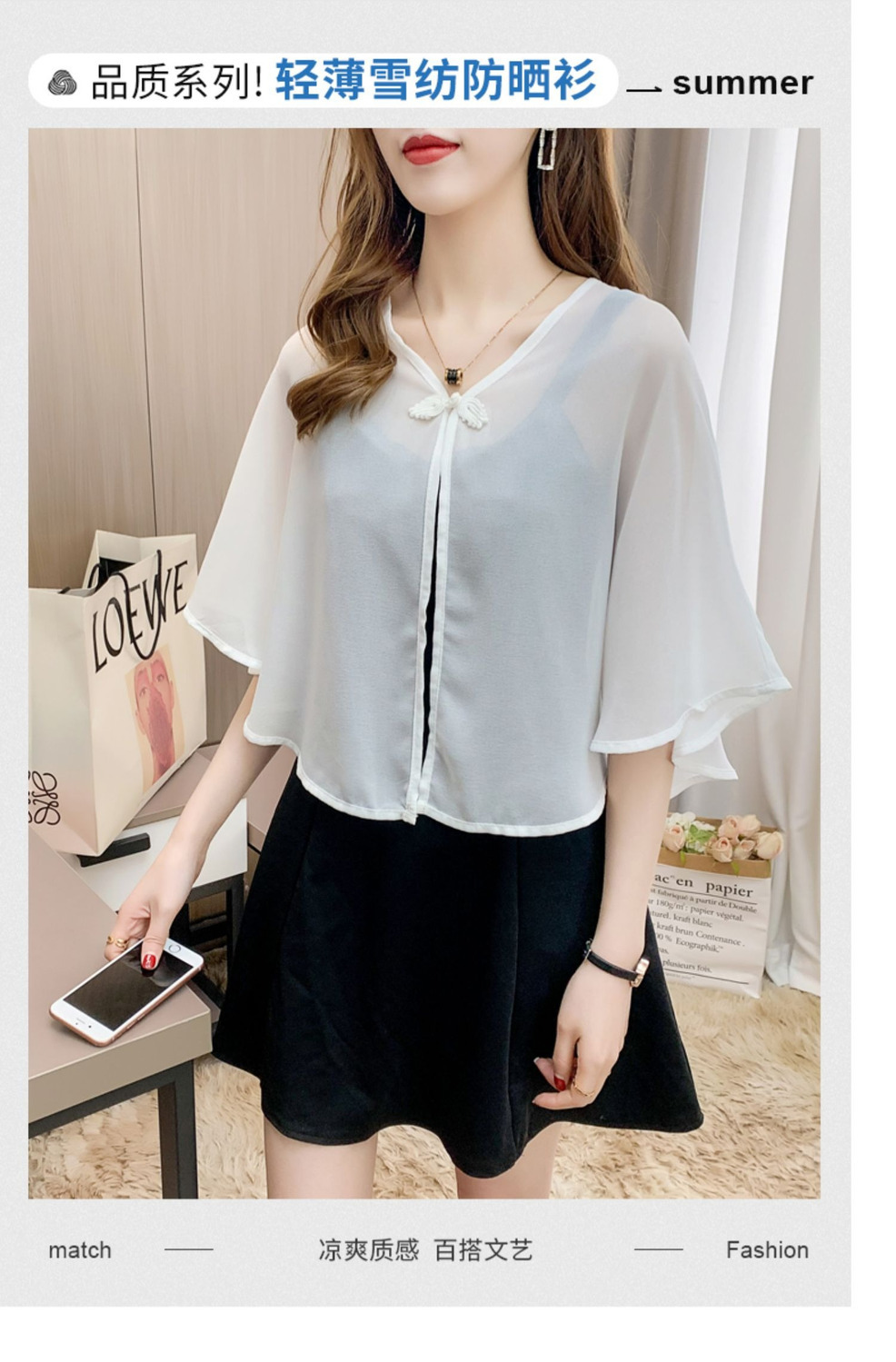 짧은 쉬폰 목도리 여성 2023 여름 외부 일치하는 치파호 스커트 양복 조끼 카디건 얇은 코트 태양 보호 의류