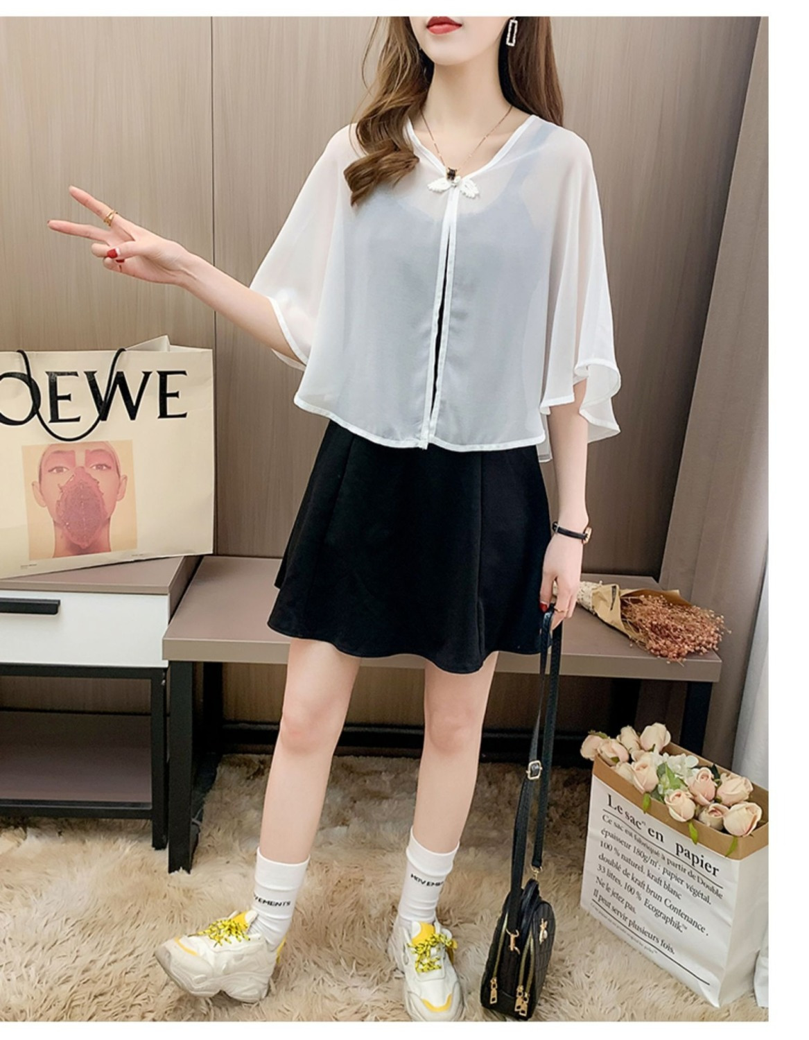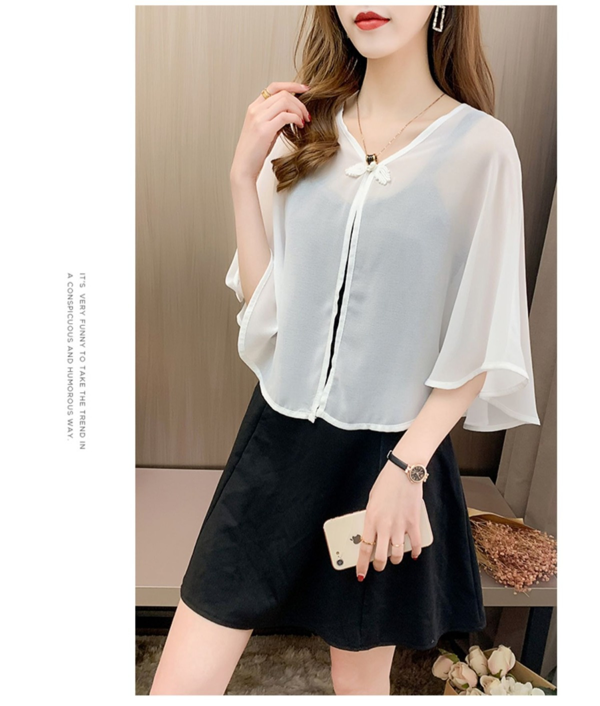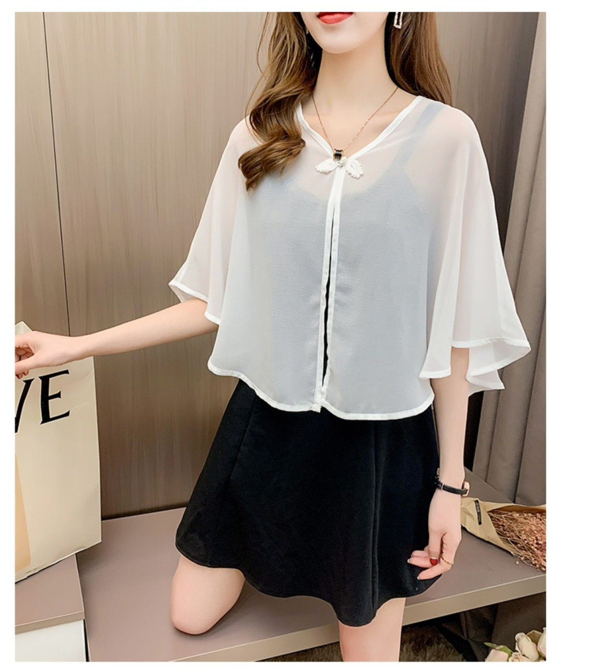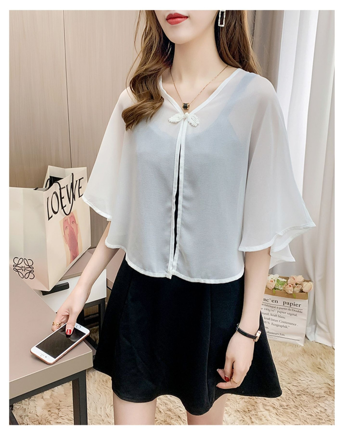 짧은 쉬폰 목도리 여성 2023 여름 외부 일치하는 치파호 스커트 양복 조끼 카디건 얇은 코트 태양 보호 의류