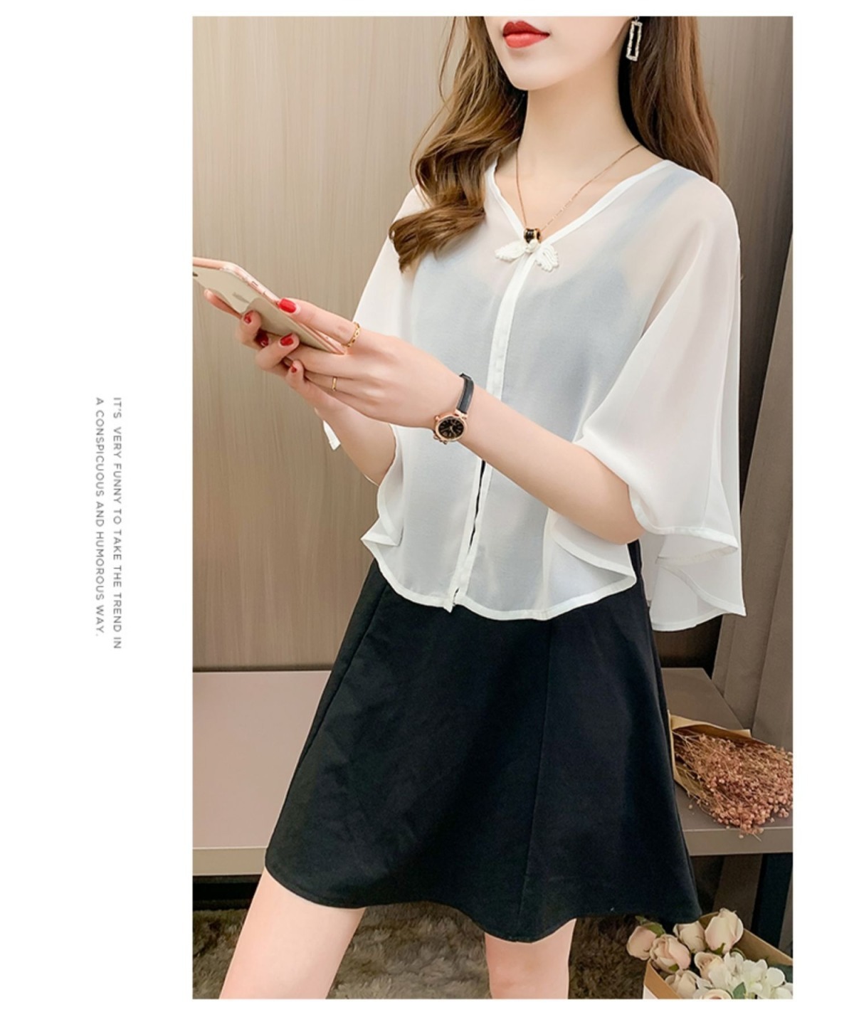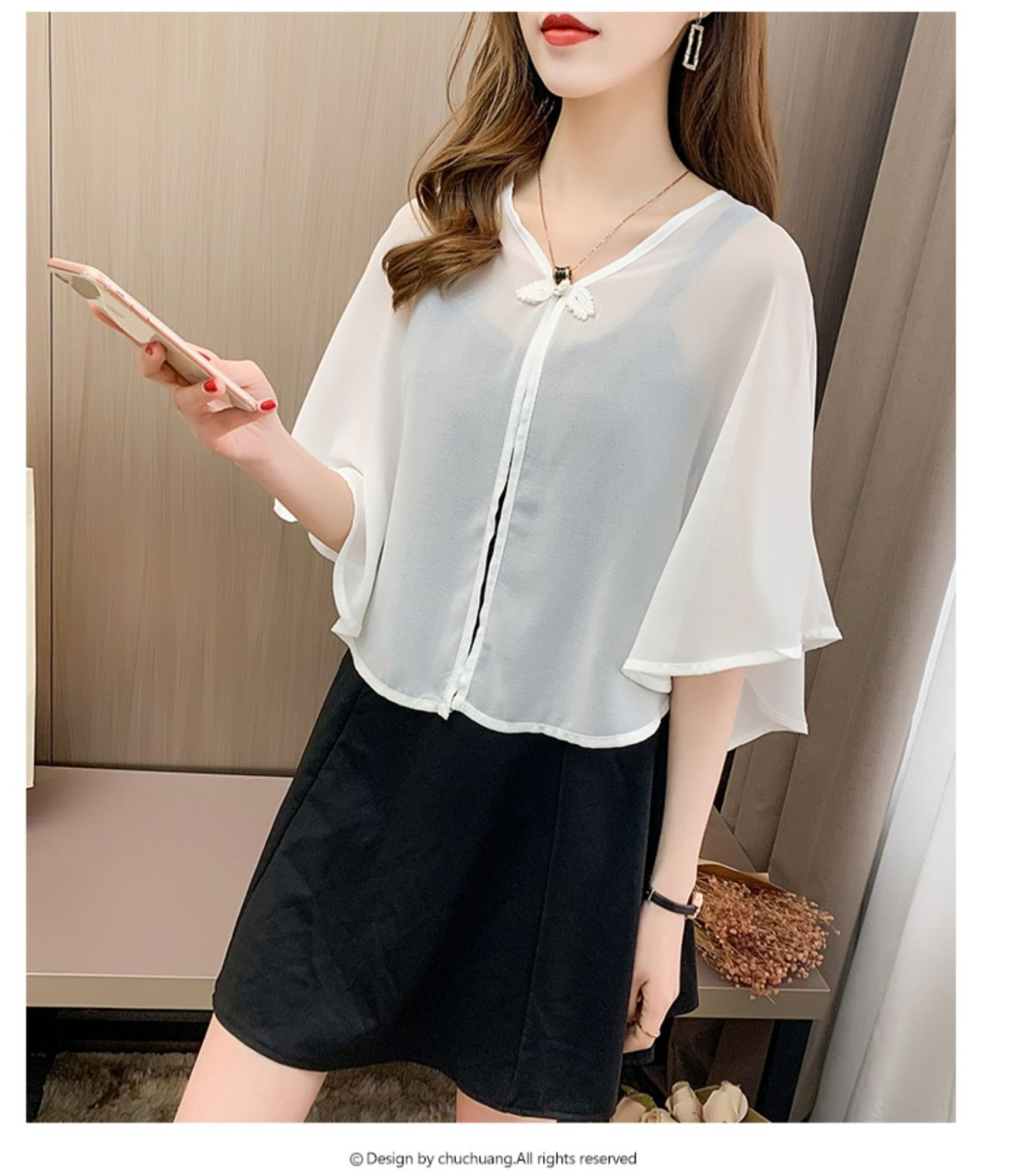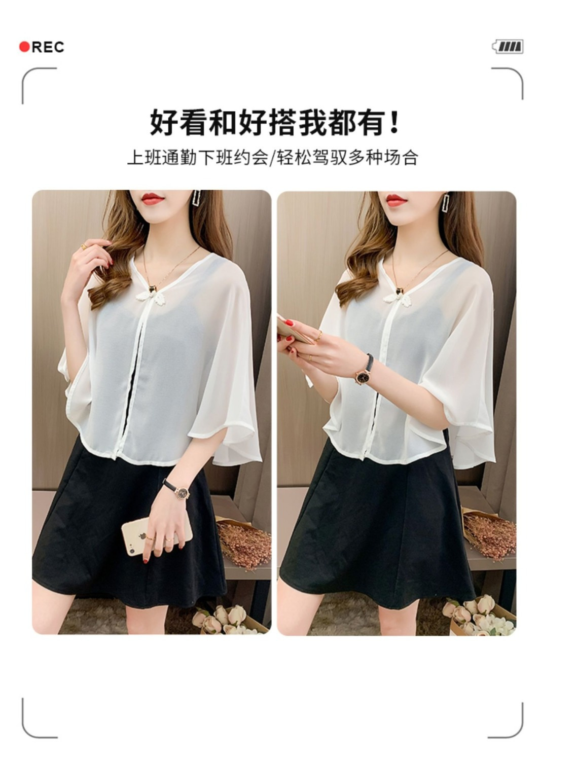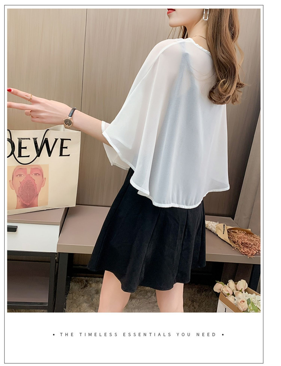 짧은 쉬폰 목도리 여성 2023 여름 외부 일치하는 치파호 스커트 양복 조끼 카디건 얇은 코트 태양 보호 의류