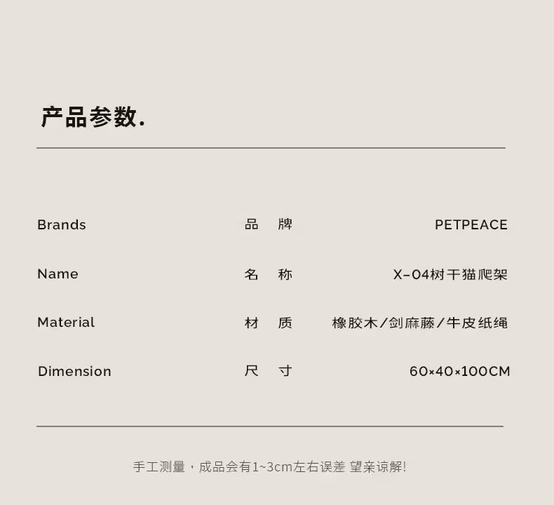 1.5厘米厚橡木实木板,搭配8厘米粗实木白色麻柱。