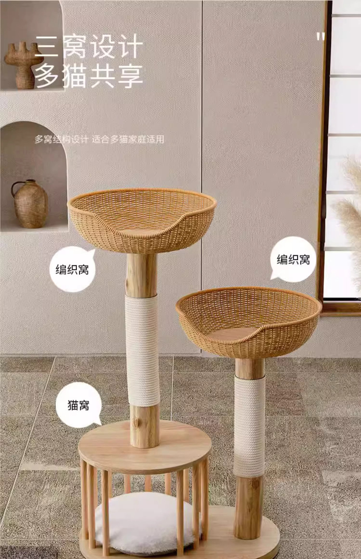 단단한 나무 고양이 등반 랙 고양이 나무 고양이 둥지 통합 사이 살 고양이 스크래치 보드 트렁크 작은 작은 작은 점유 등나무 고양이 랙 작은 아파트스토어 가기