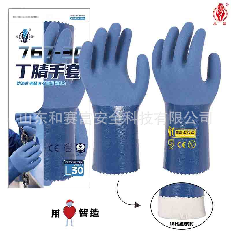 Chunlei 767-30 니트릴 벨벳 산 및 알칼리 저항성 오일 기모 따뜻한 라이닝 기계 광산 작업 노동 보호 장갑