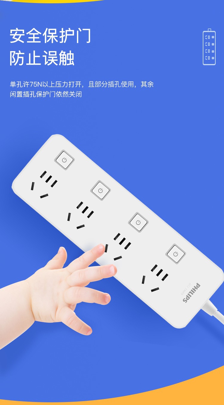오리지널 필립스 신형 국가 표준 가정용 4구 1.8m 3m 분리 제어 전원 스트립 소켓스토어 가기