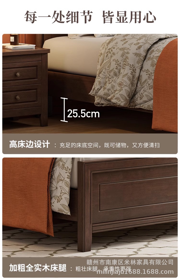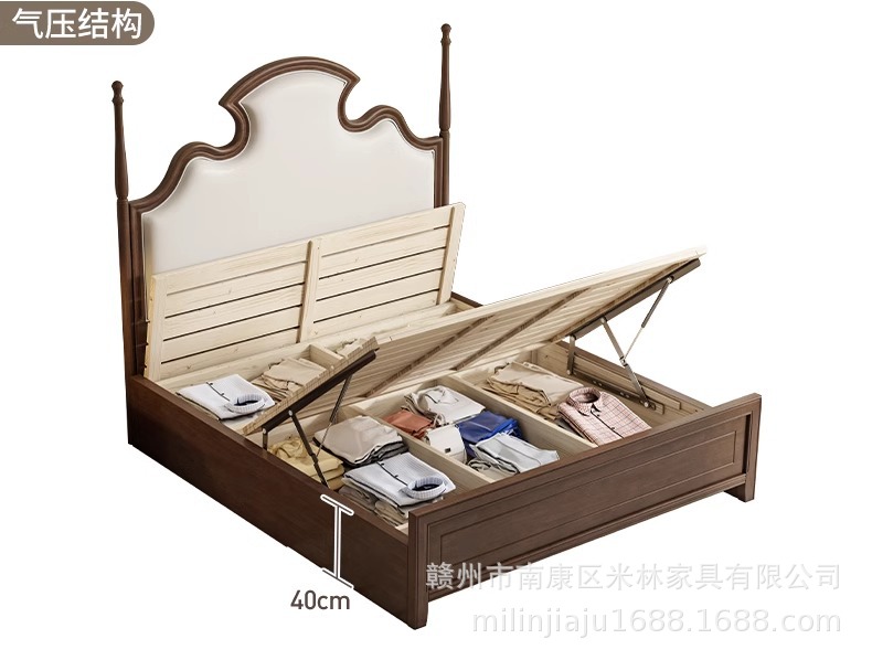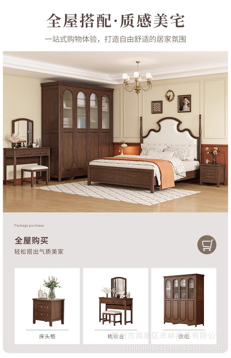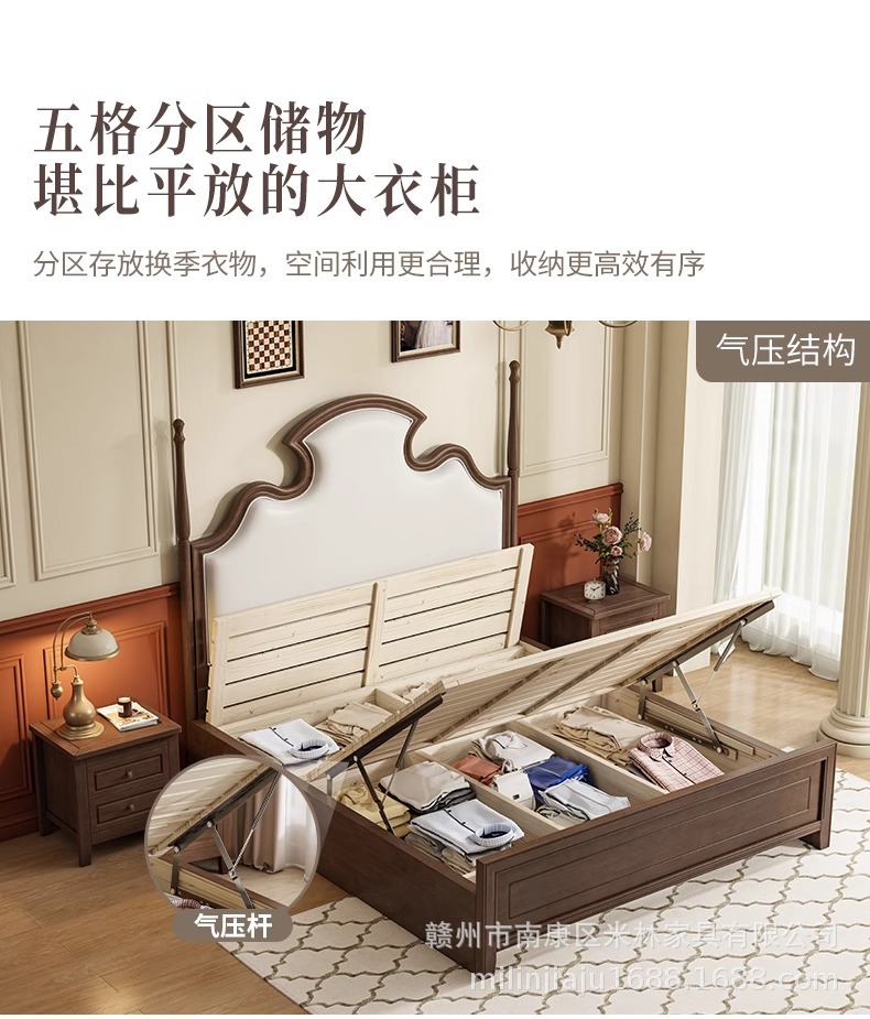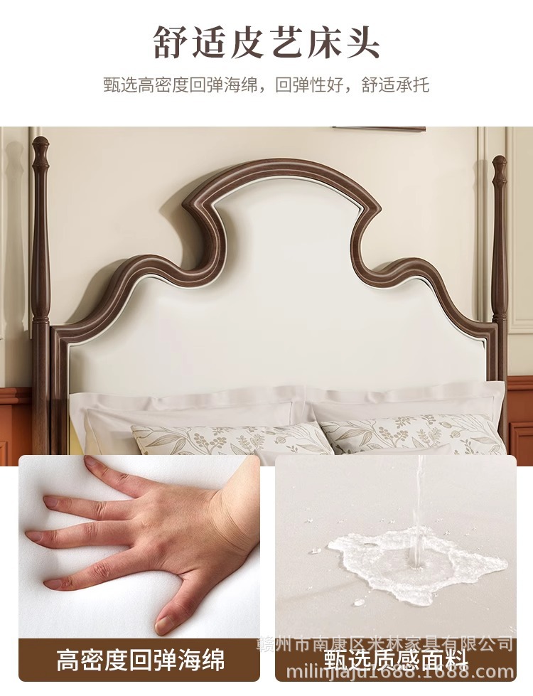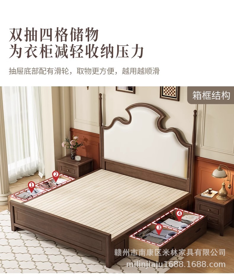 아메리칸 라이트 럭셔리 스타일 원목 침대 모던 심플 1.68m 더블 침대 레트로 프렌치 침대 라이트 럭셔리 마스터 침대스토어 가기