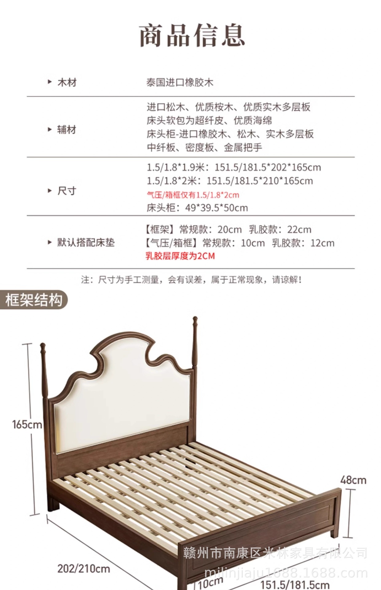 아메리칸 라이트 럭셔리 스타일 원목 침대 모던 심플 1.68m 더블 침대 레트로 프렌치 침대 라이트 럭셔리 마스터 침대