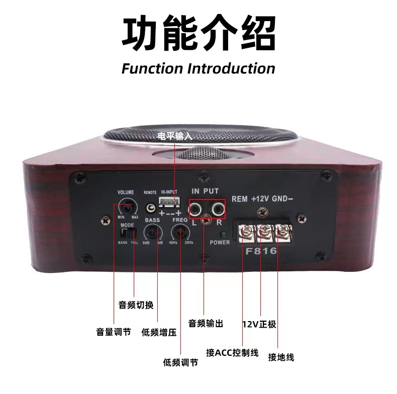 크로스-국경 8 인치 12V 초박형 자동차 서브 우퍼, 자동차 시트 아래 나무 초박형 서브 우퍼