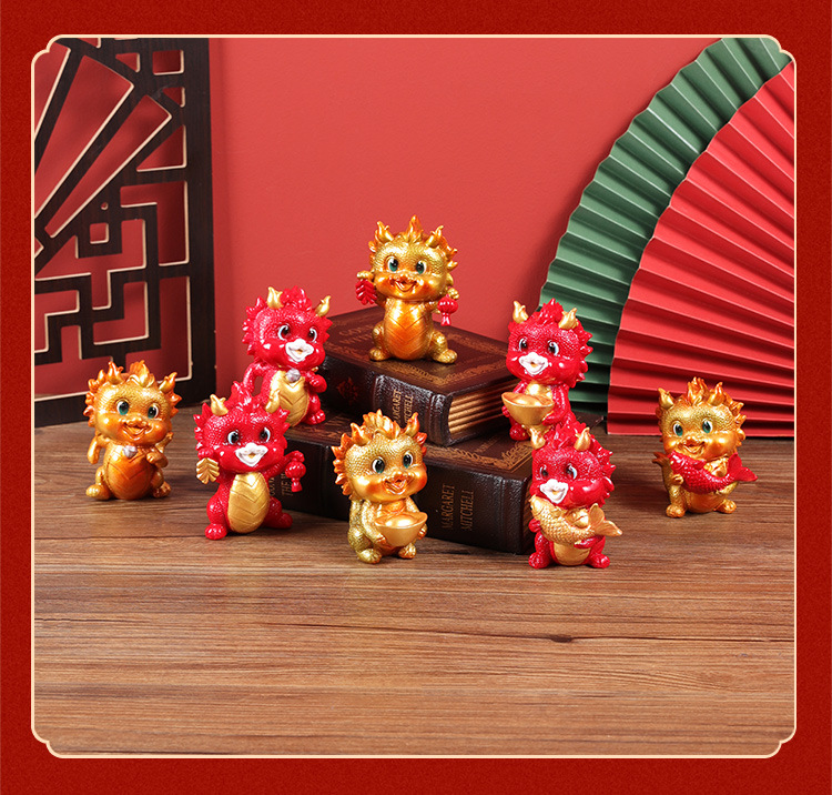 새로운 국가 패션 Fengxiang Ruilong 작은 장식품 드래곤 년 마스코트 장식 자동차 귀여운 애완 동물 용 아기 수지 공예