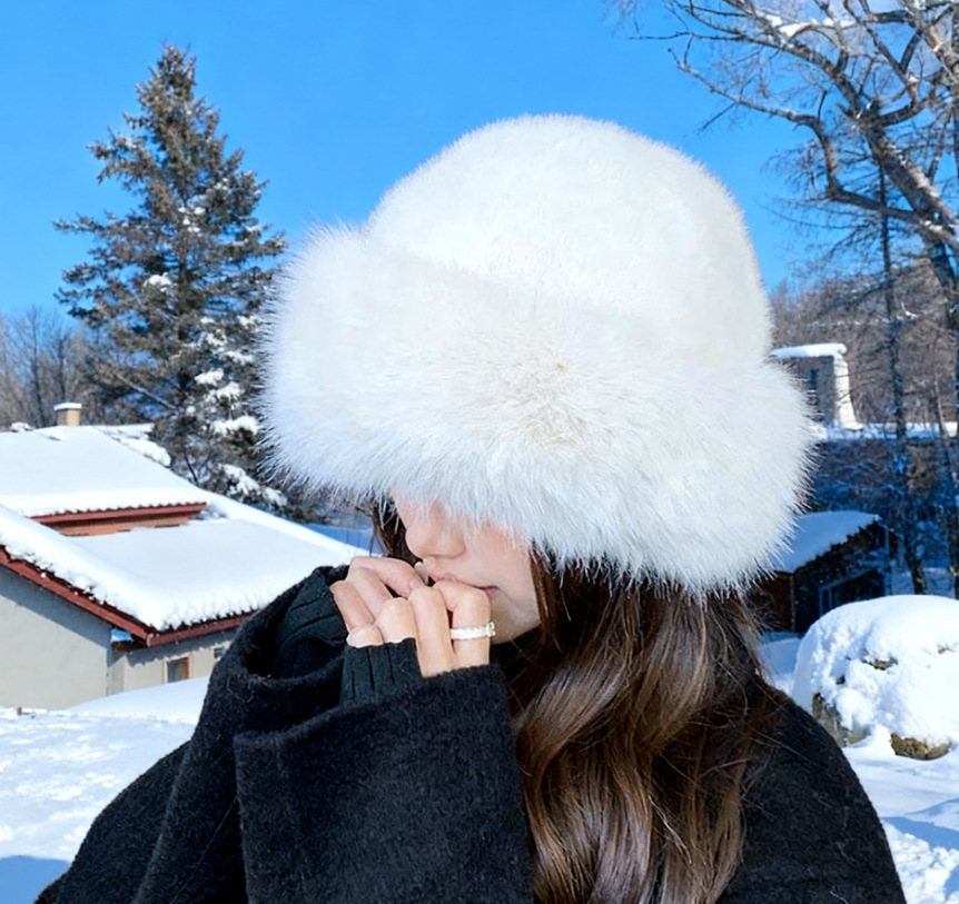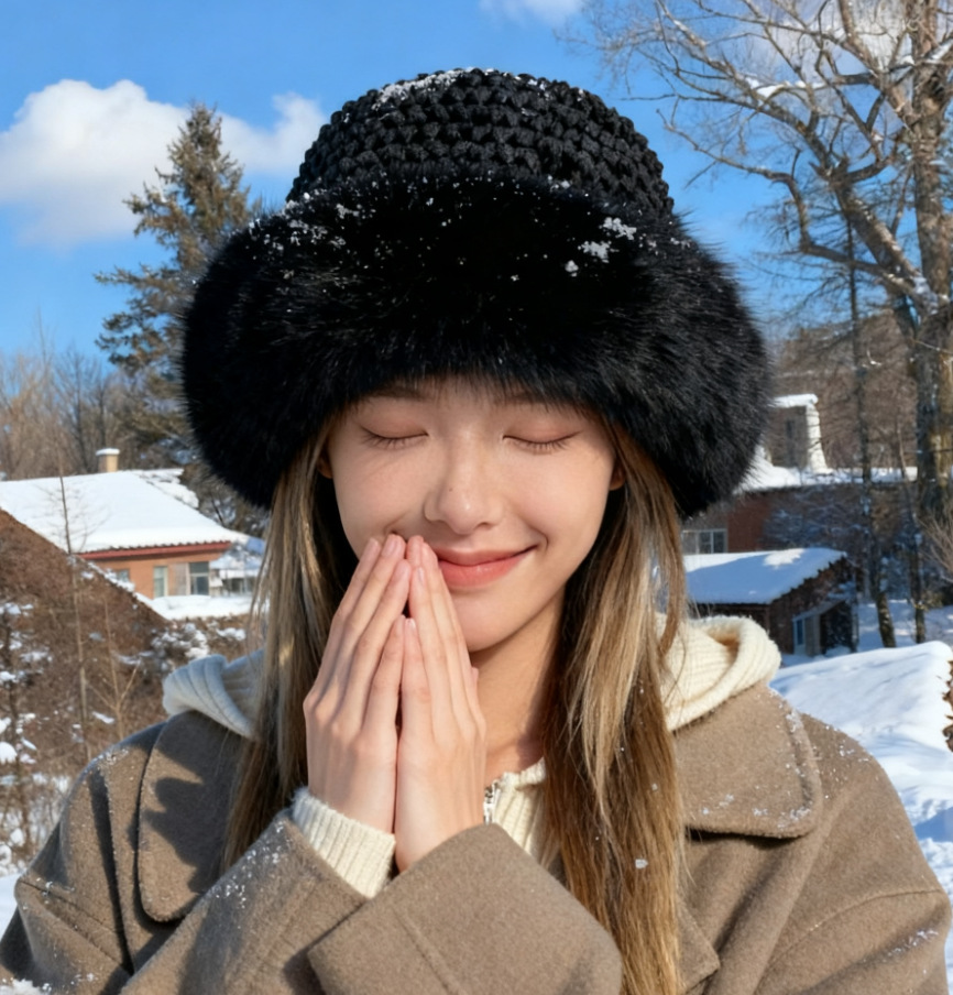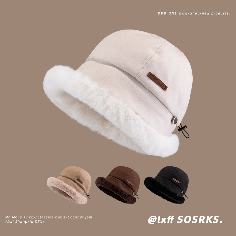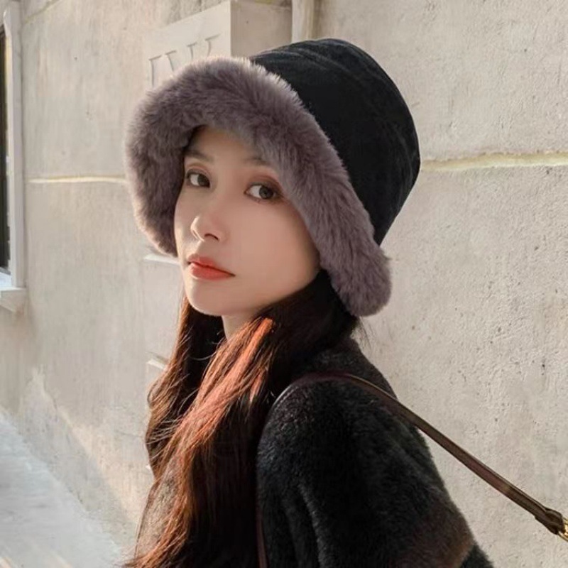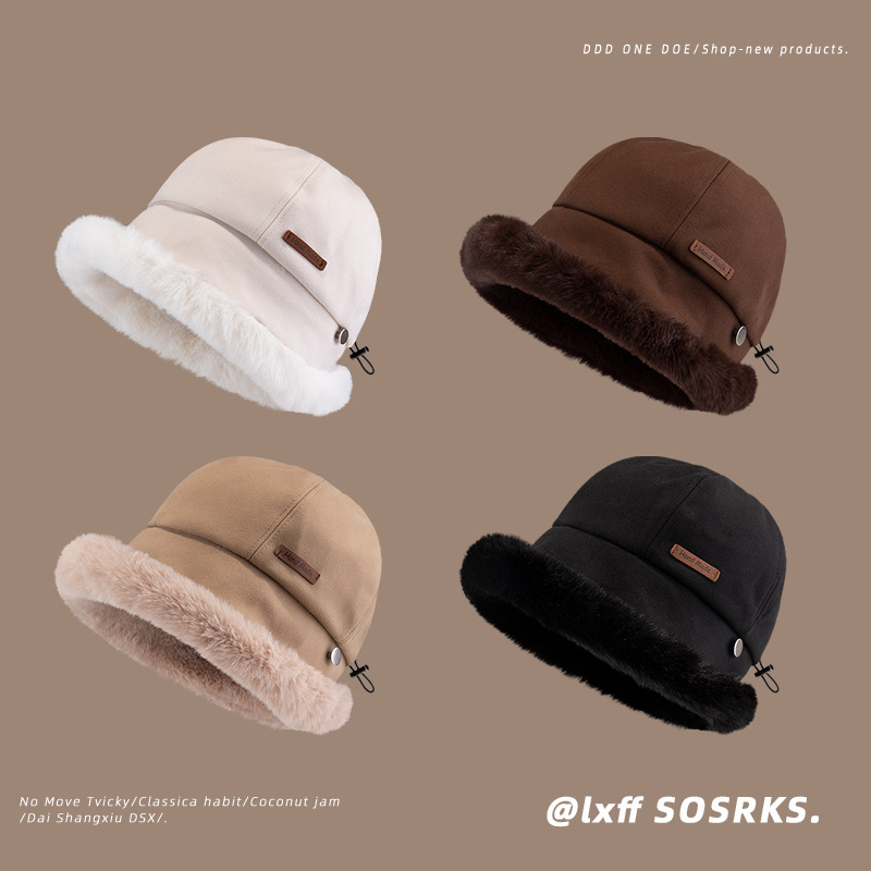가을 겨울용 여성용 털모자, 얼굴이 작아 보이는 한국 스타일의 버킷햇, 자전거 타기용 귀 보호 방한 모자, 마스크 착용 가능, 몽골 모자스토어 가기
