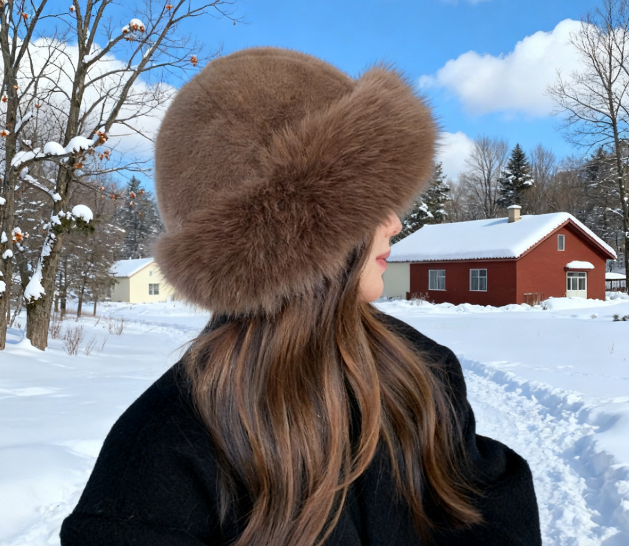 • 모조 밍크 풀 울 몽골리안 모자 - 다크 브라운