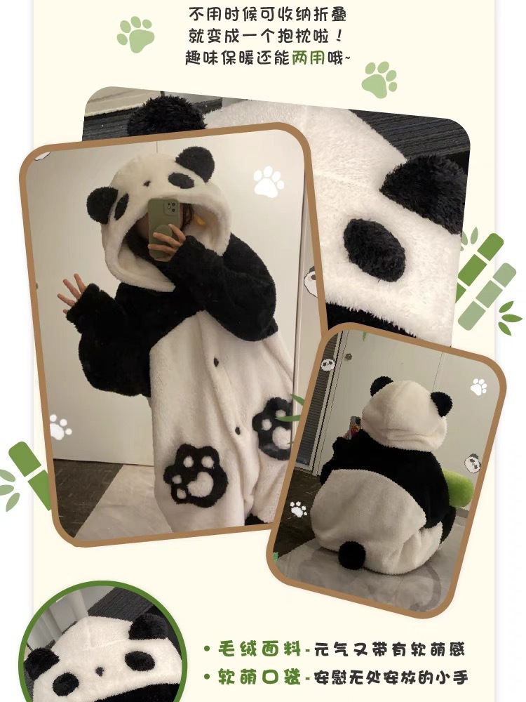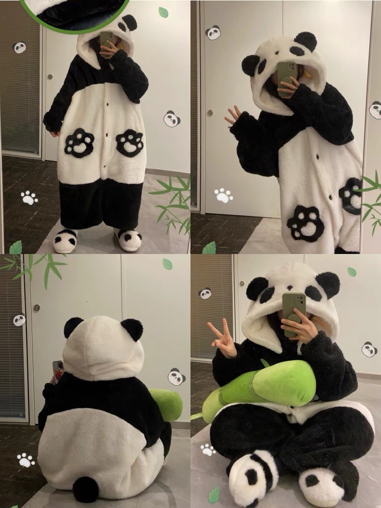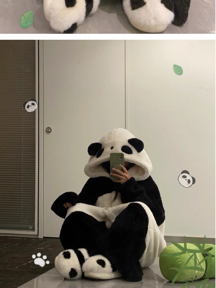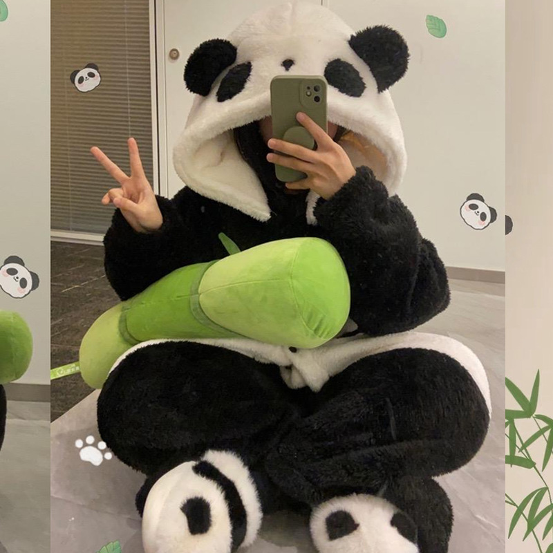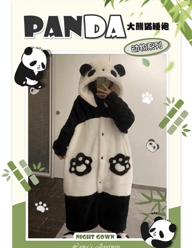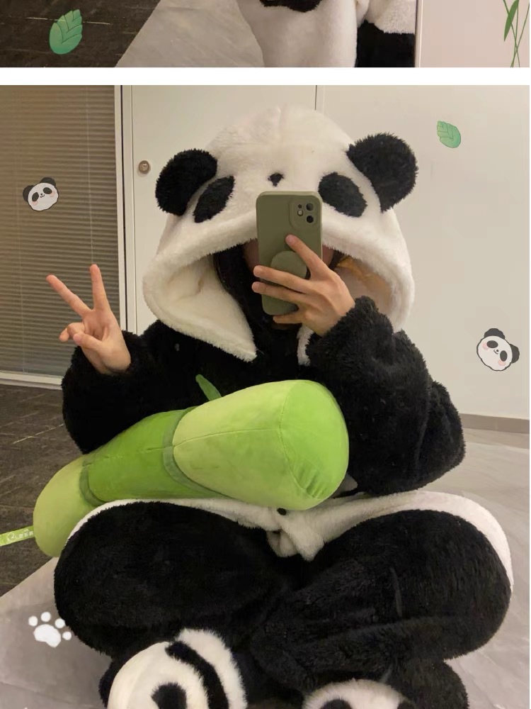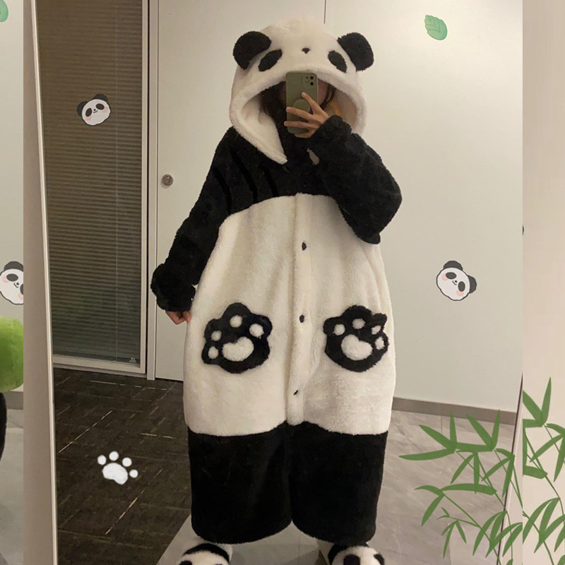 산호 양털 가을과 겨울 자이언트 팬더 잠옷 여성의 두꺼운 양털 학생 원피스 파자마 세트 집에서 착용 할 수 있습니다.스토어 가기