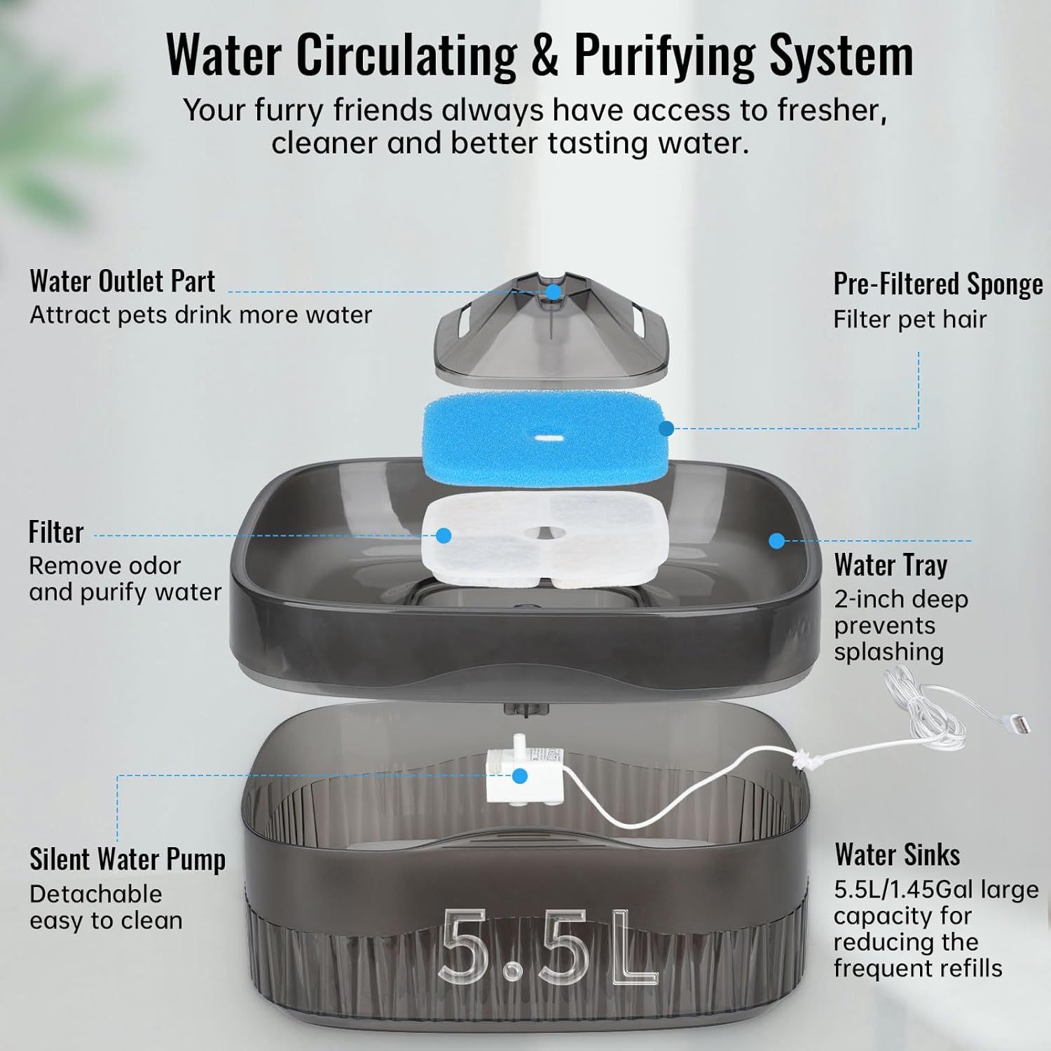 개 분수 워터 디스펜서 9L 자동 고양이 분수 개 마시는 그릇 5.5L 대형 개 고양이 및 여러 애완 동물을위한 적합