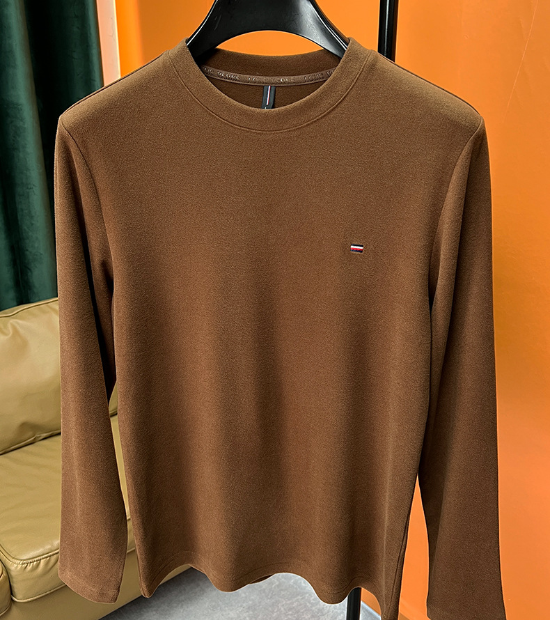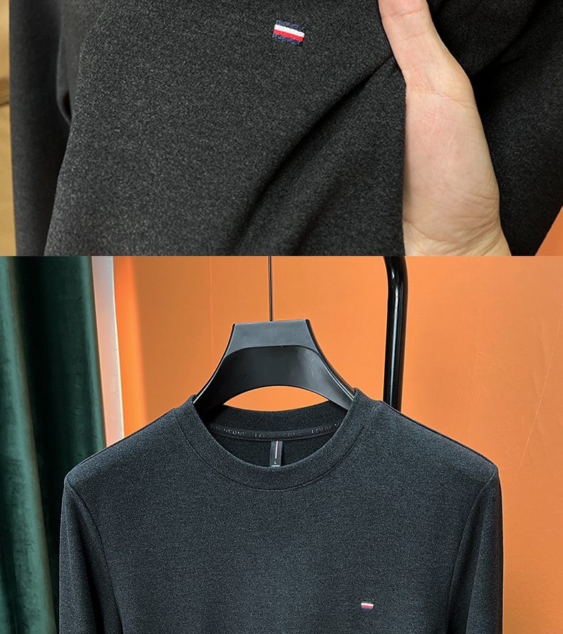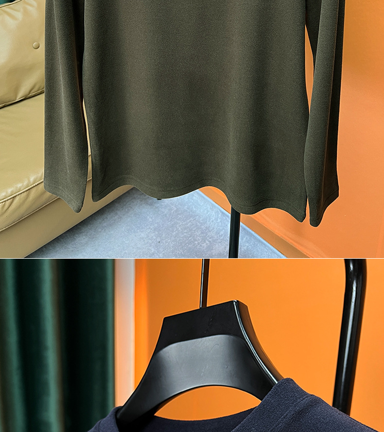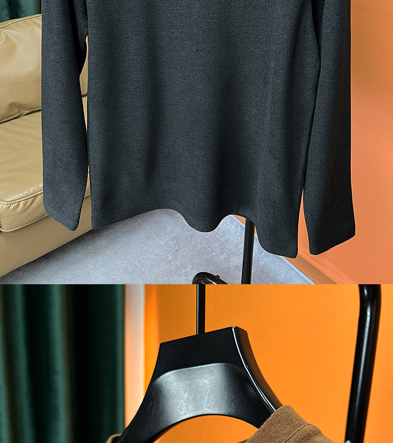 가을과 겨울 2023 새로운 반 터틀넥 하이 엔드 따뜻한 드 벨벳 트렌디 한 밑바닥 셔츠 남성용 긴팔 티셔츠 남성복스토어 가기