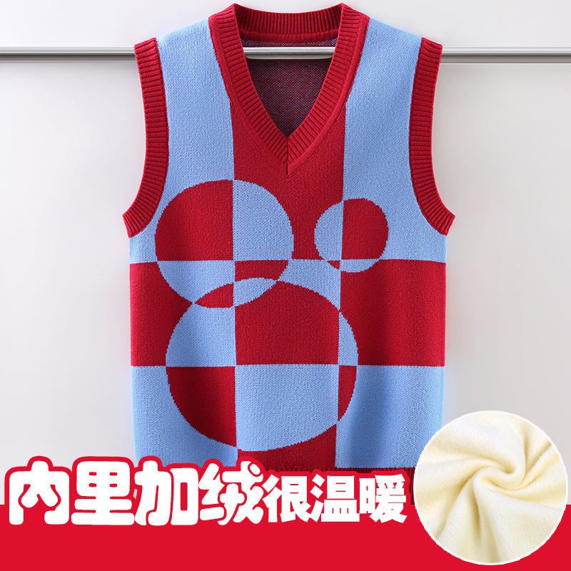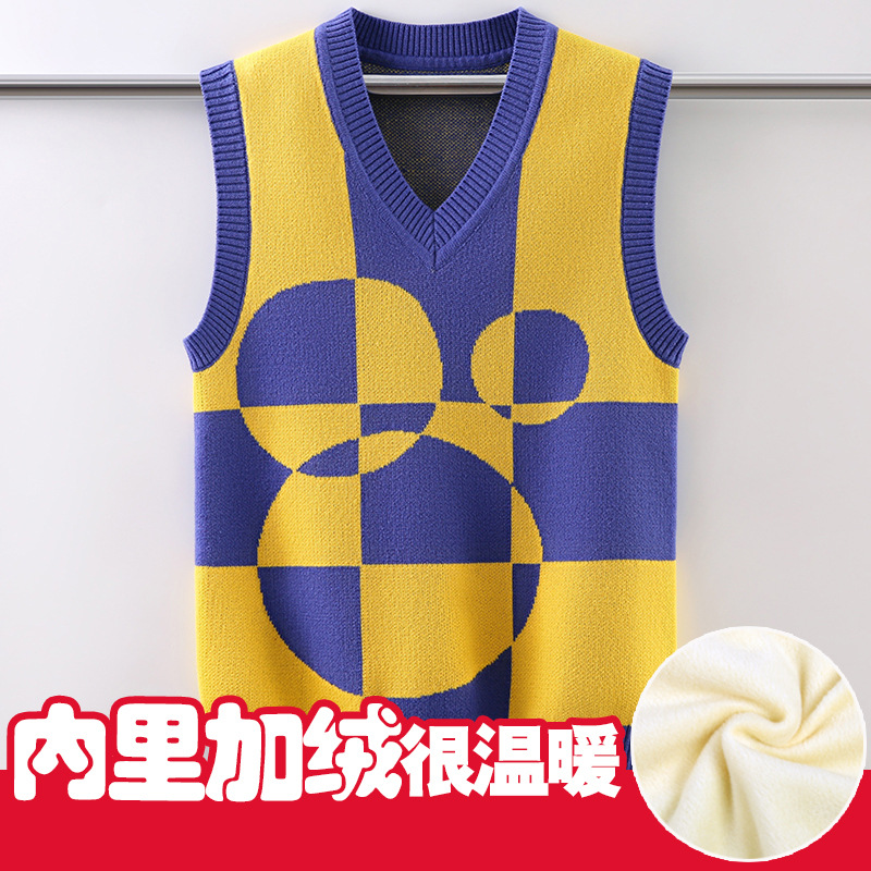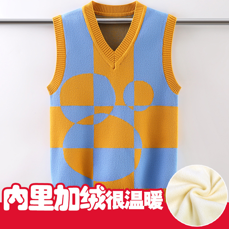 소년 스웨터 조끼 새로운 중형 및 대형 어린이 소년 조끼 기모 두꺼운 니트 조끼 순면스토어 가기
