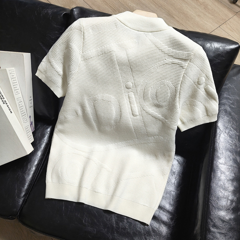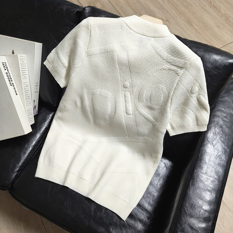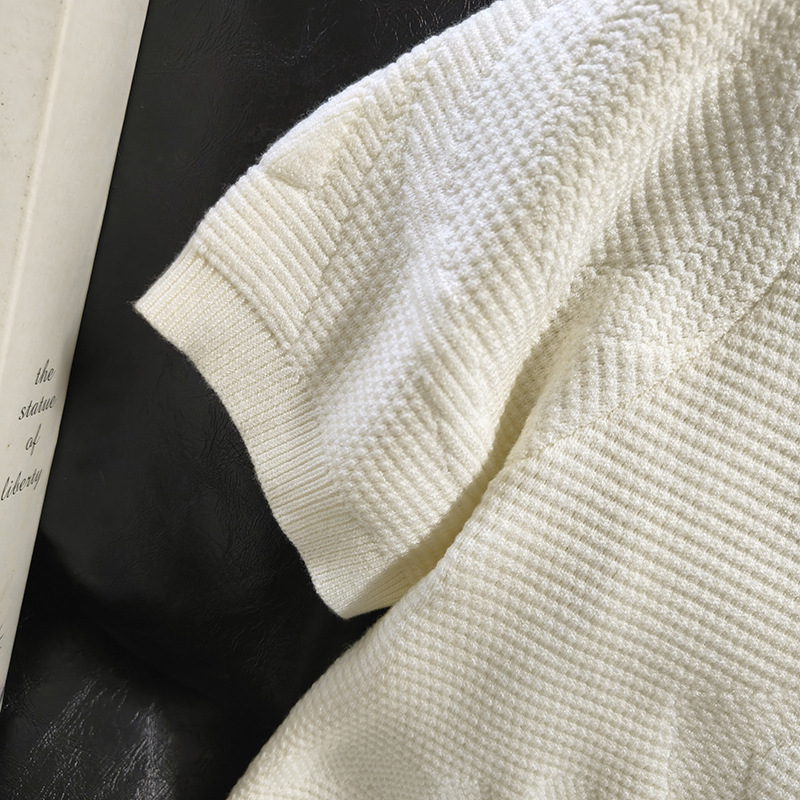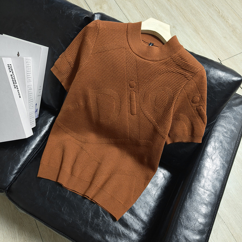 가을과 겨울 새로운 두꺼운 둥근 목 풀오버 짧은 소매 남성용 울 스웨터 단색 문자 자카드 탑