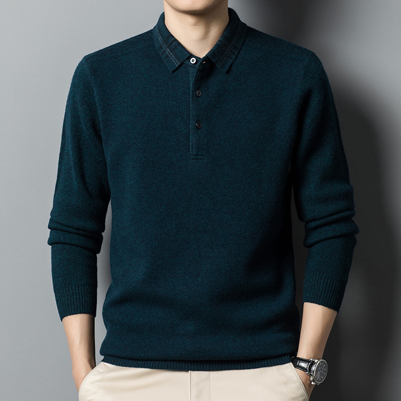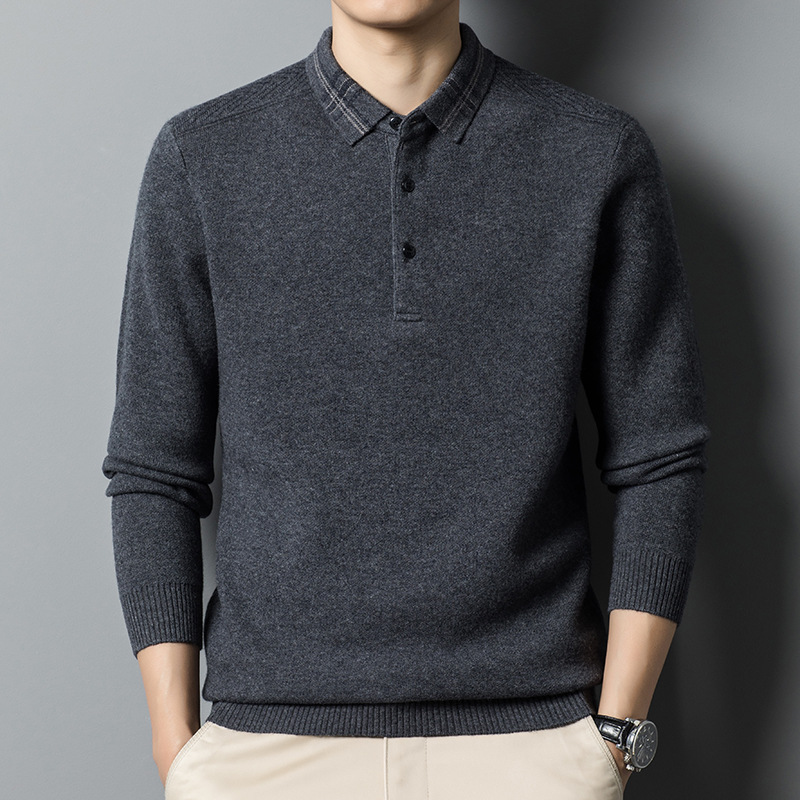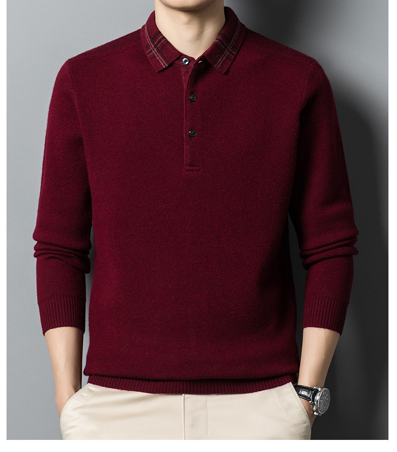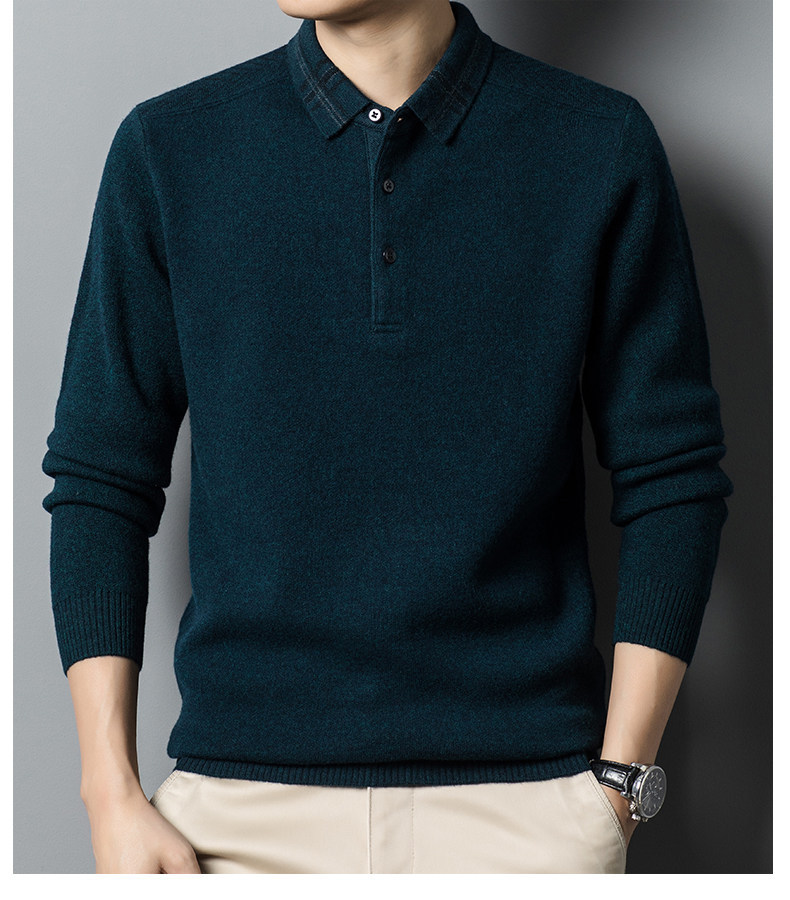 모직 스웨터 남성용 순수 울 버클 하프 터틀넥 따뜻한 스웨터 가을과 겨울 두꺼운 중년 아빠 스웨터스토어 가기