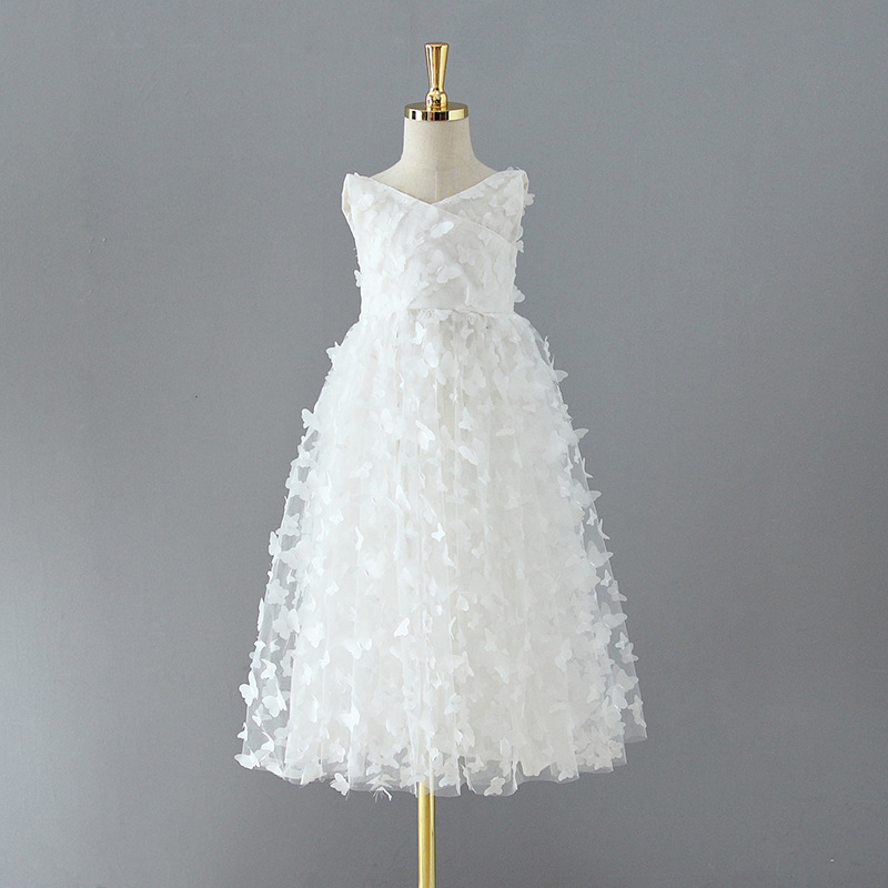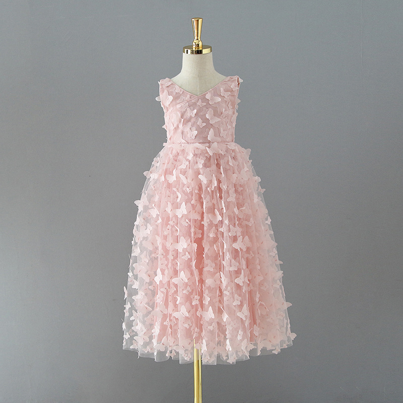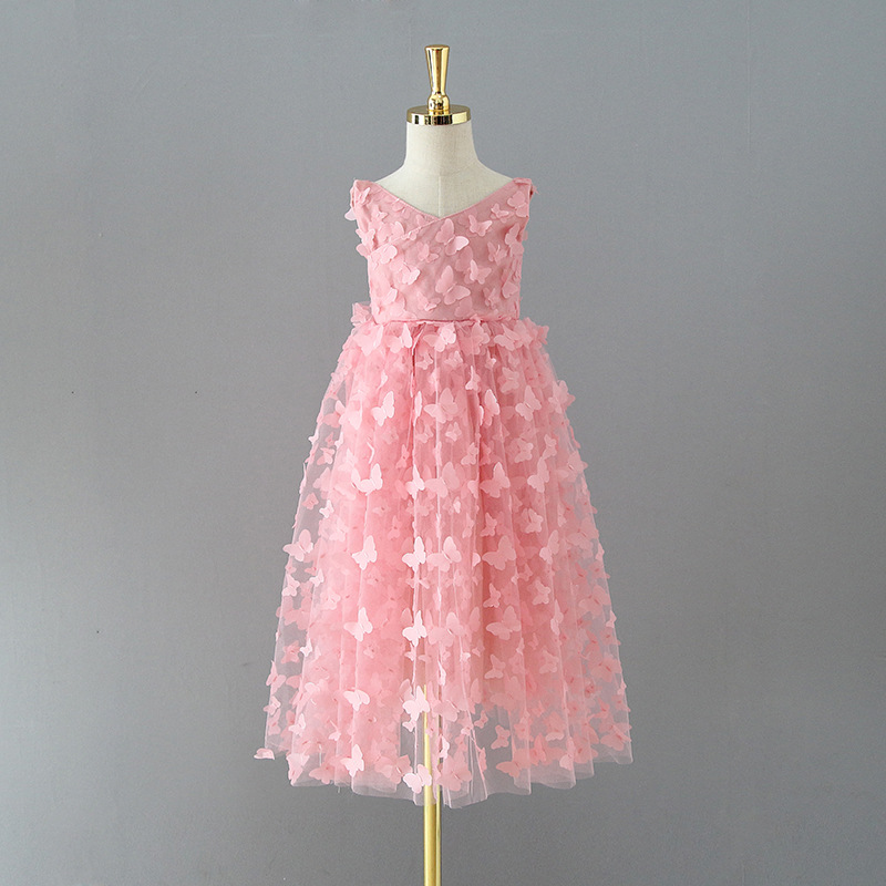 외국 무역 아동 드레스 2025 여아 원피스 입체 나비 망사 벨트