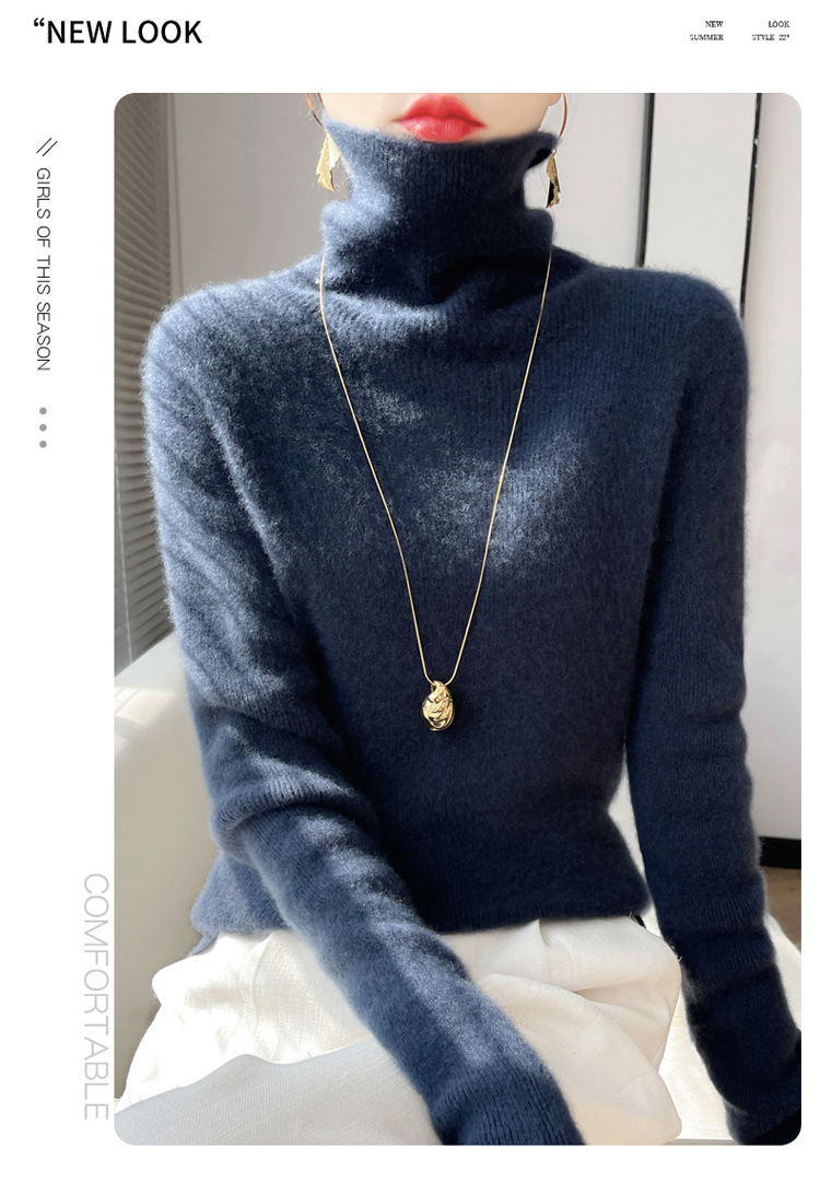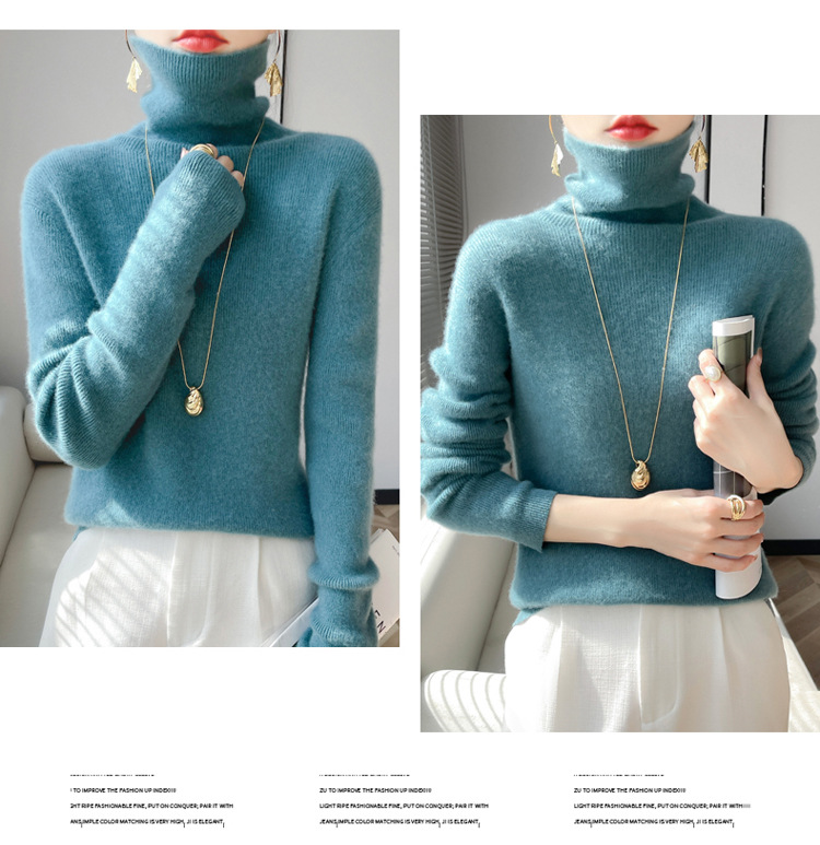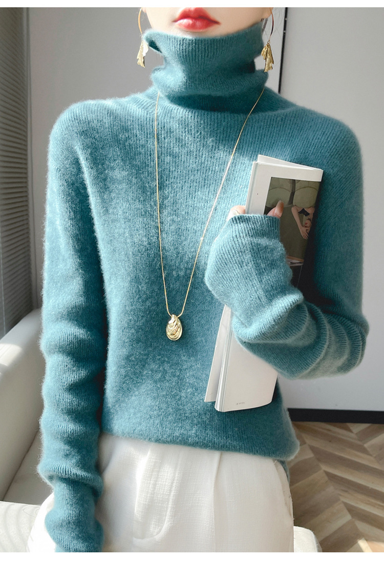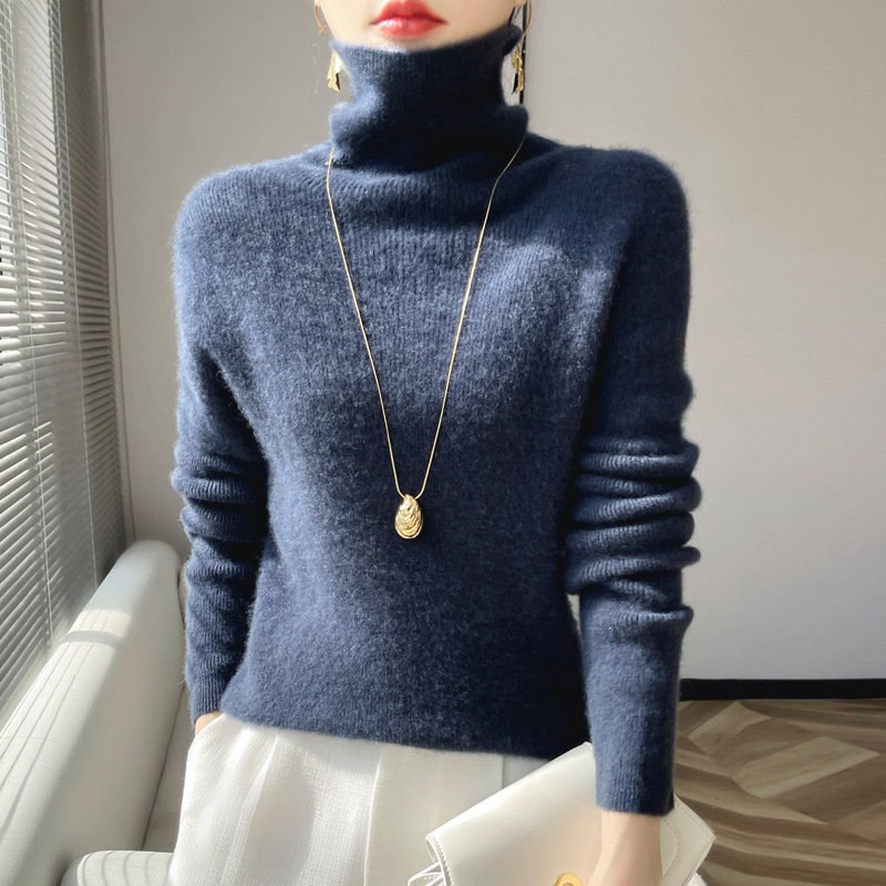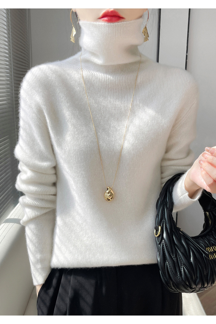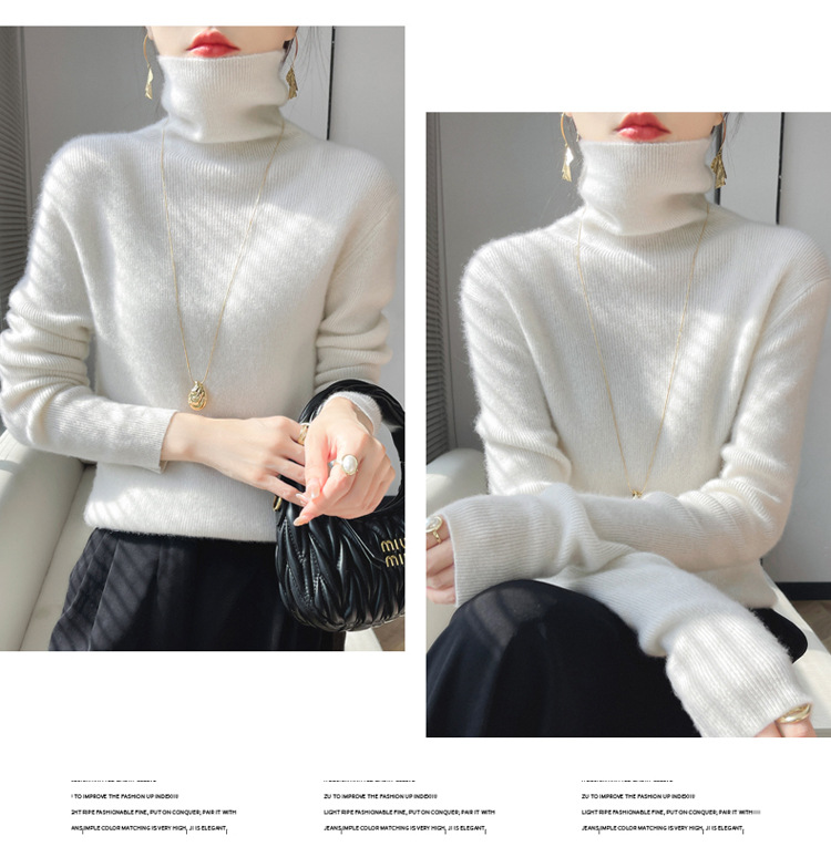 2025 가을 겨울 여성용 울 혼방 하이넥 심플 숏 풀오버 니트 베이스 셔츠스토어 가기