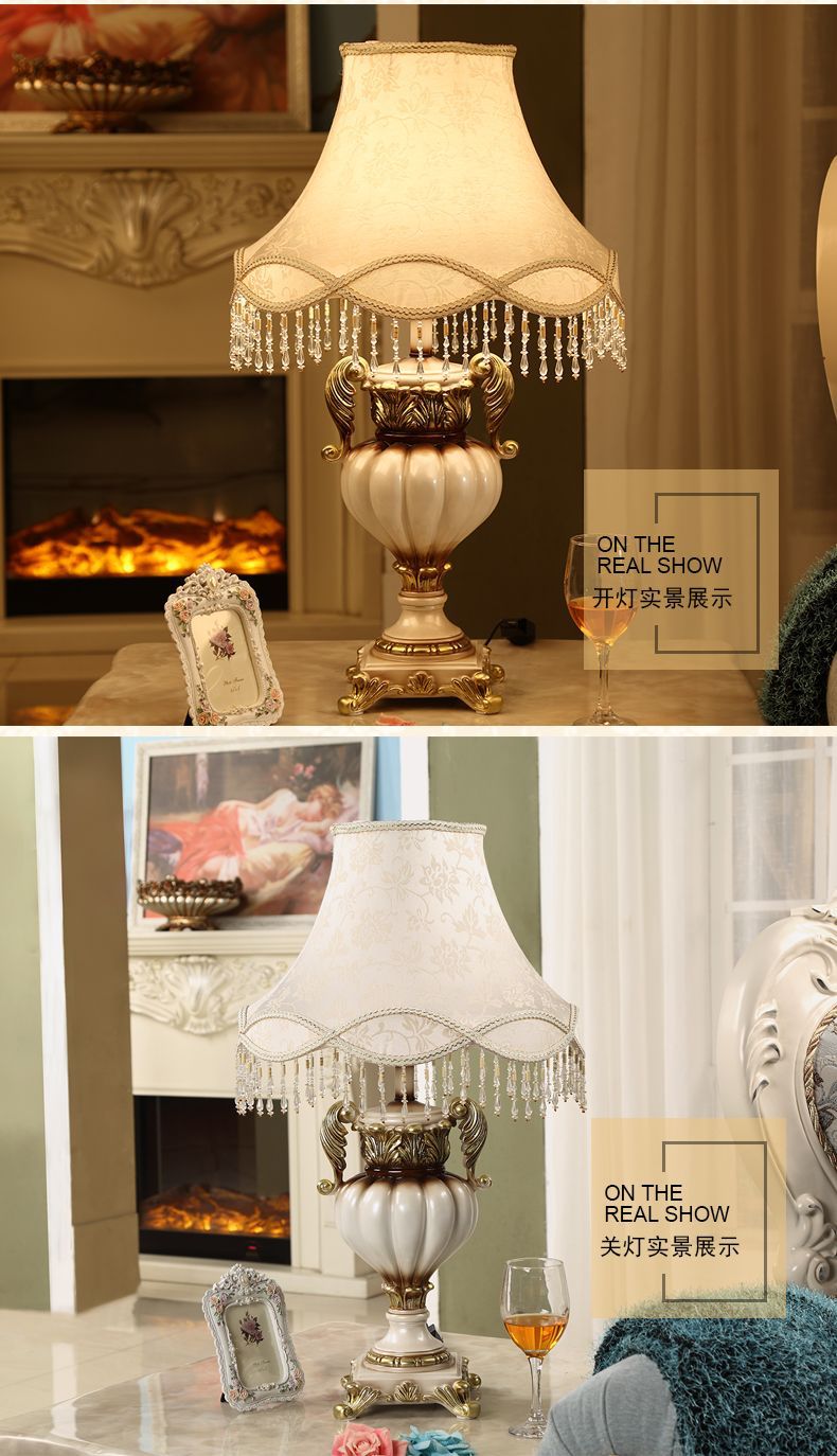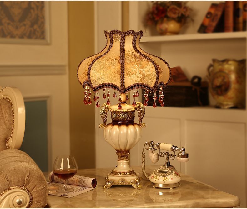 고급 유럽 스타일 테이블 램프 창조적 인 직물 연구 고전적인 복고풍 거실 새로운 웨딩 침실 침실 테이블 램프스토어 가기