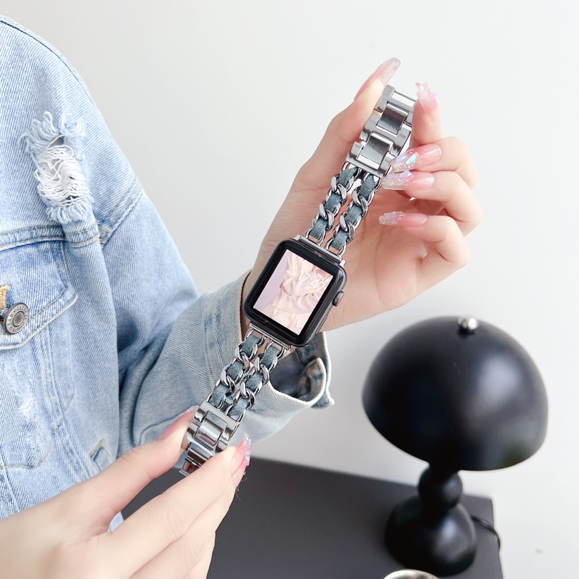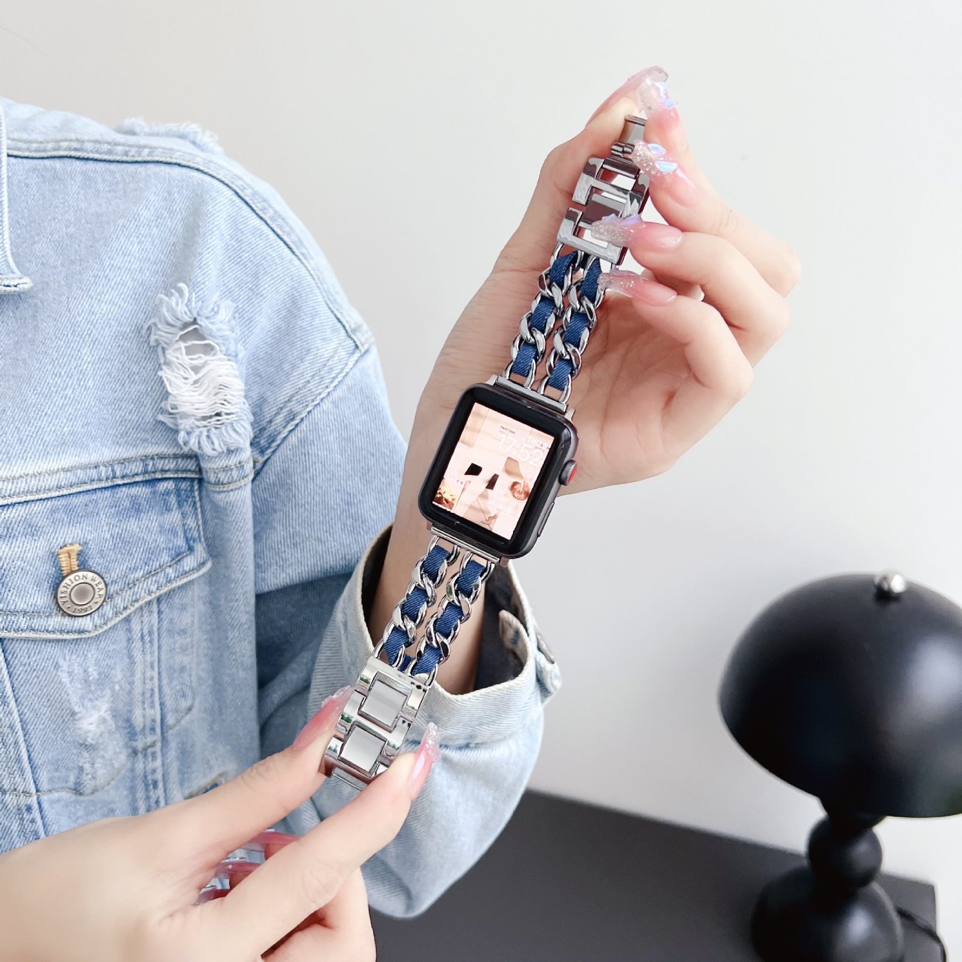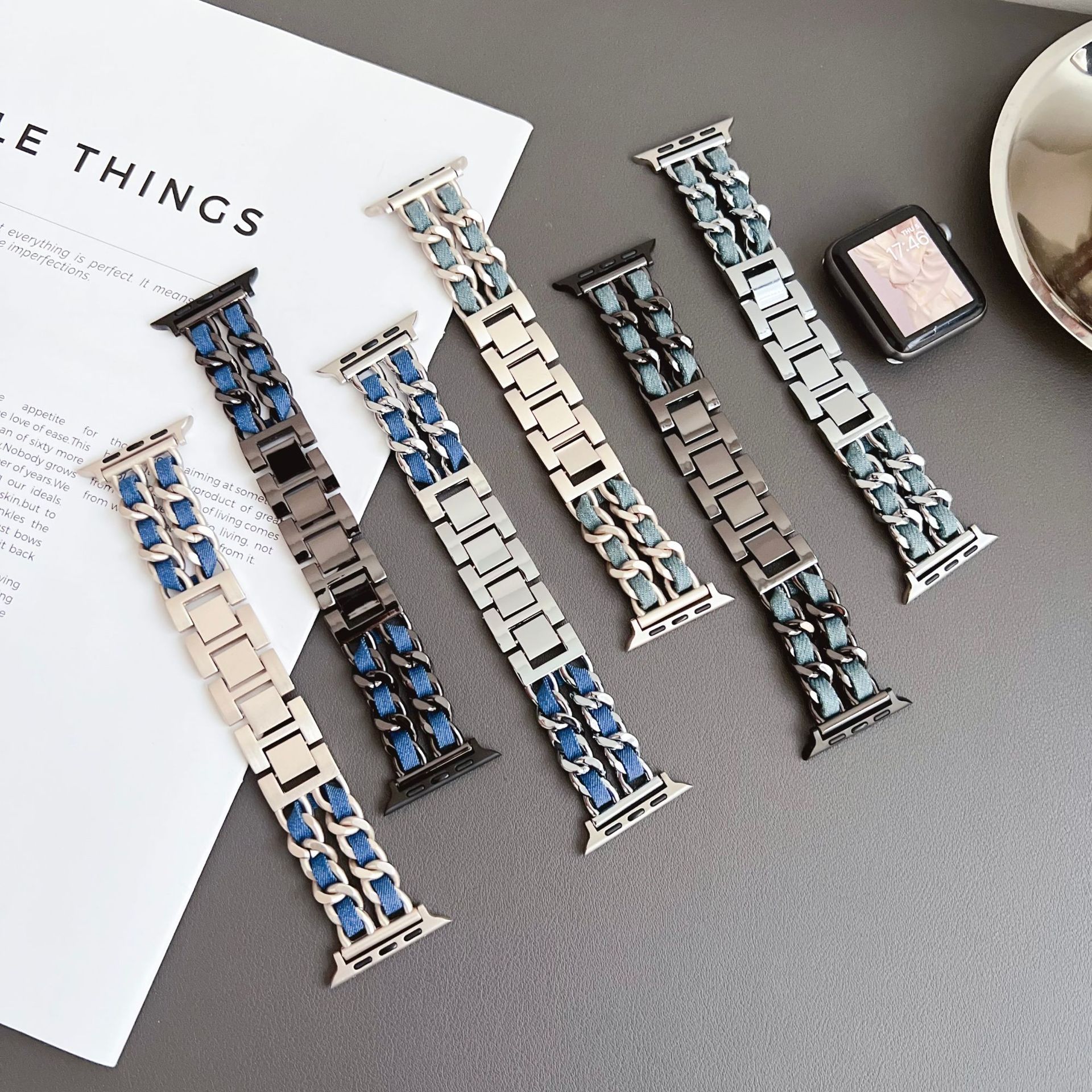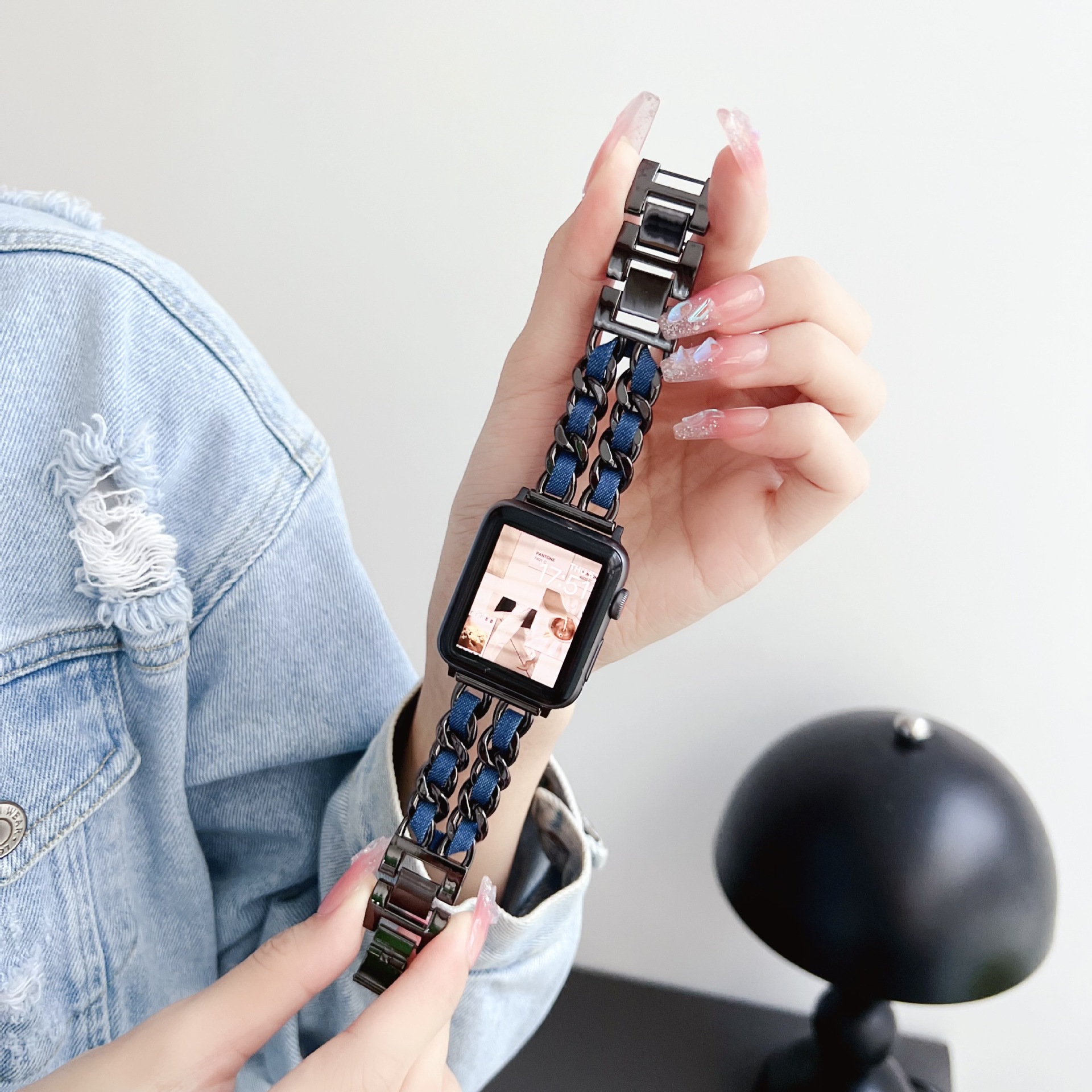 초 새로운 데님 애플 스테인레스 스틸 데님 스트랩에 적합한 인터넷 유명인 샤넬 스타일스토어 가기