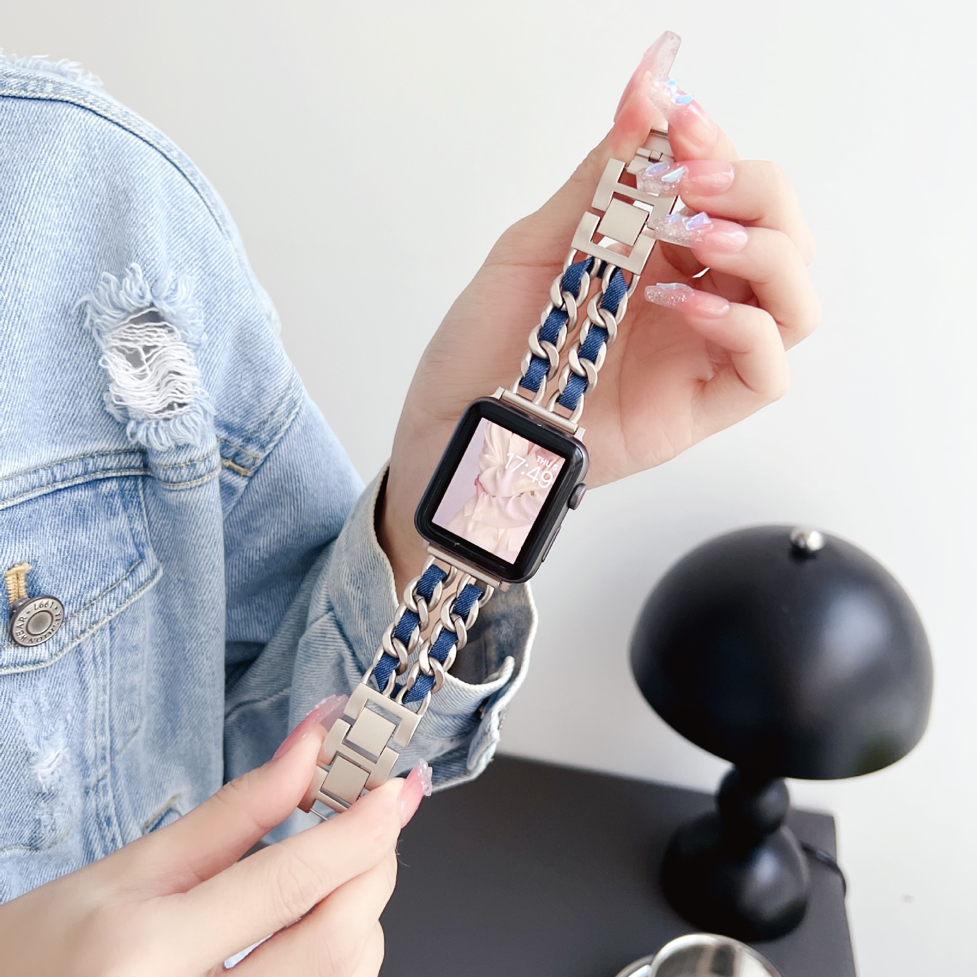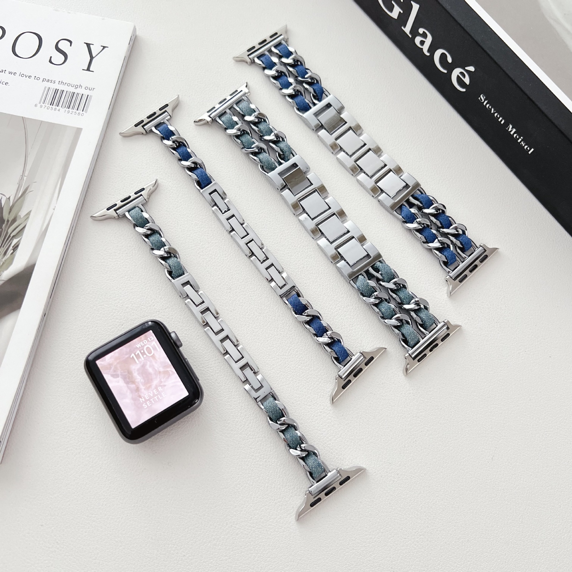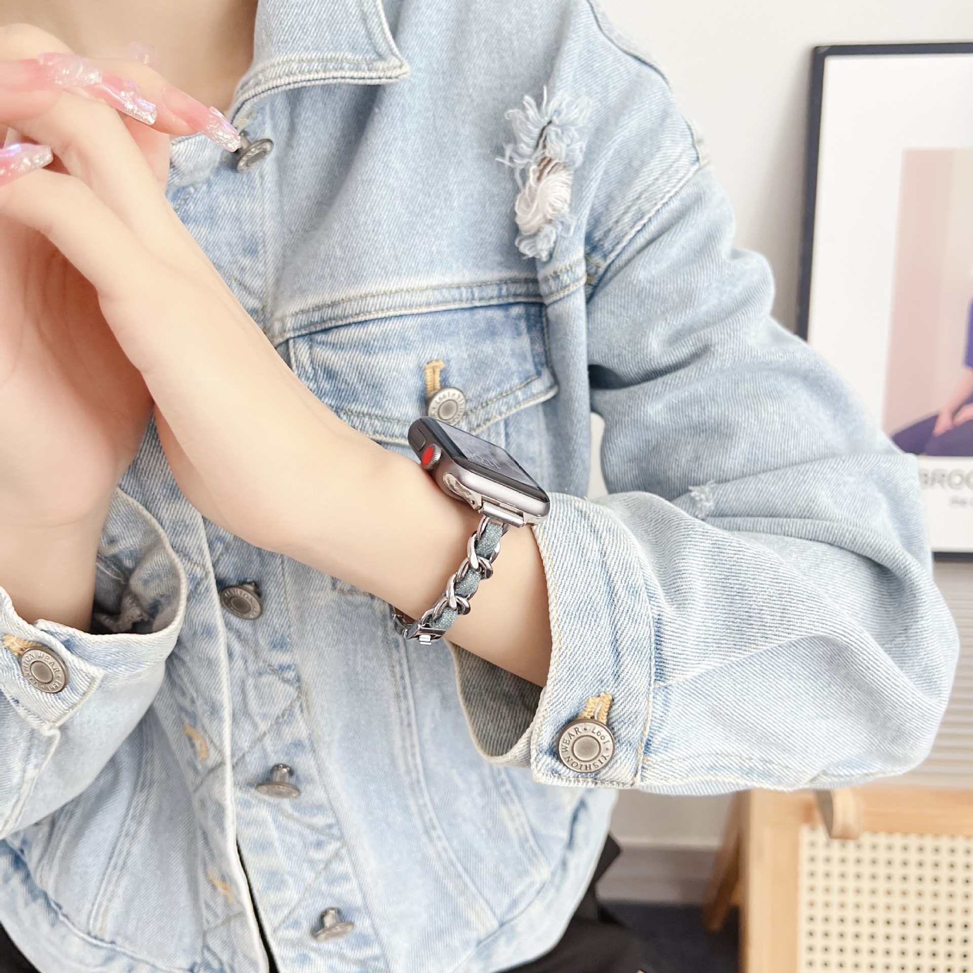 초 새로운 데님 애플 스테인레스 스틸 데님 스트랩에 적합한 인터넷 유명인 샤넬 스타일스토어 가기