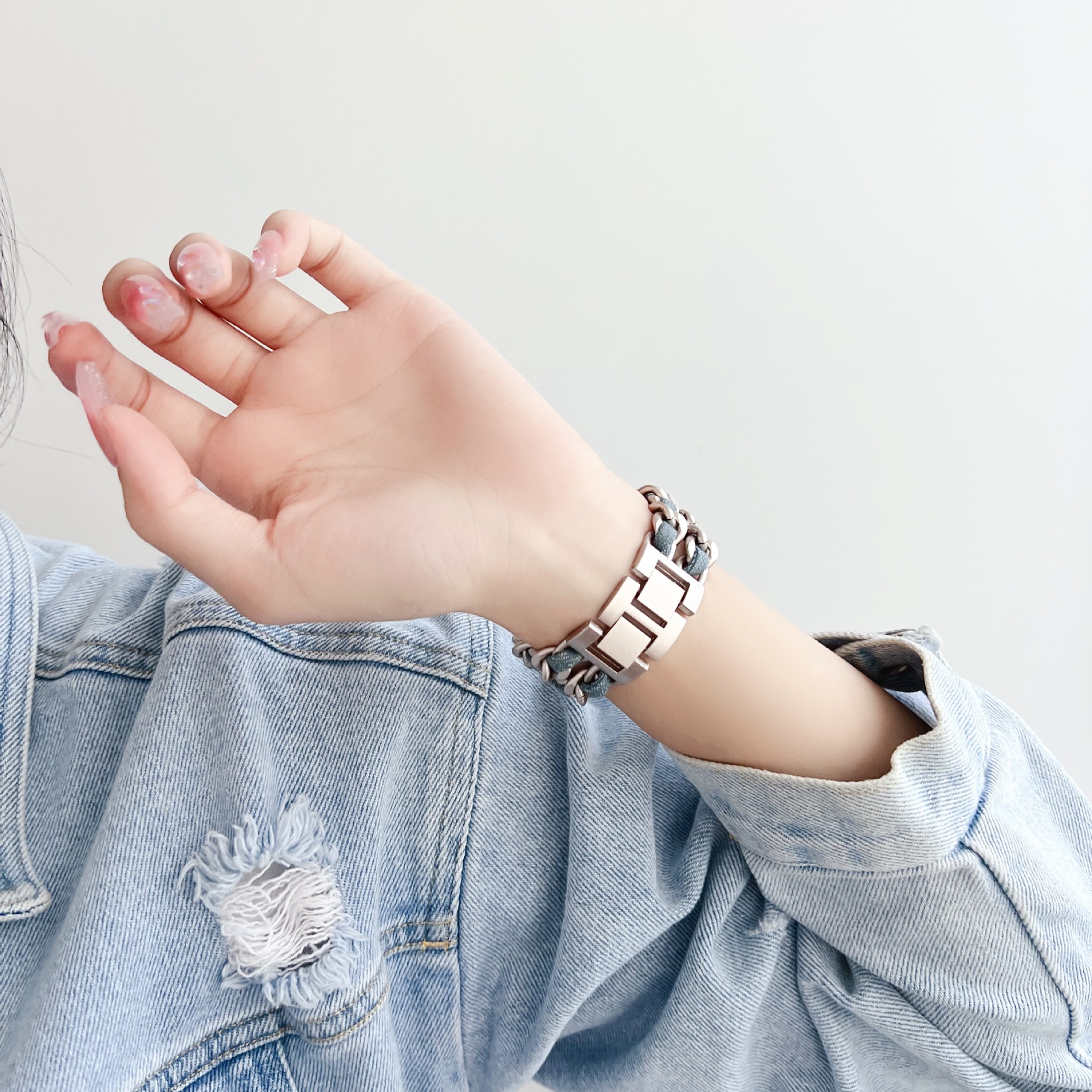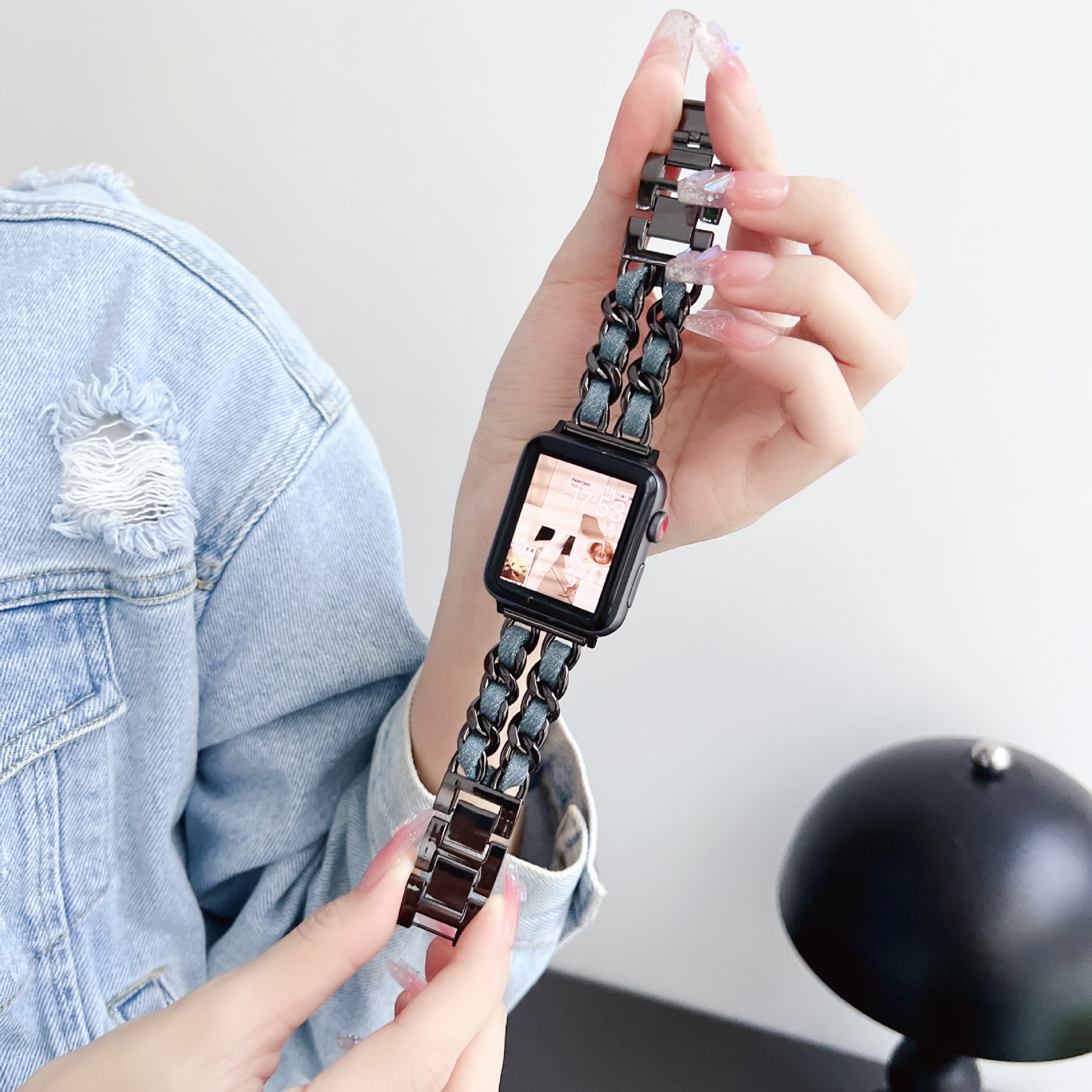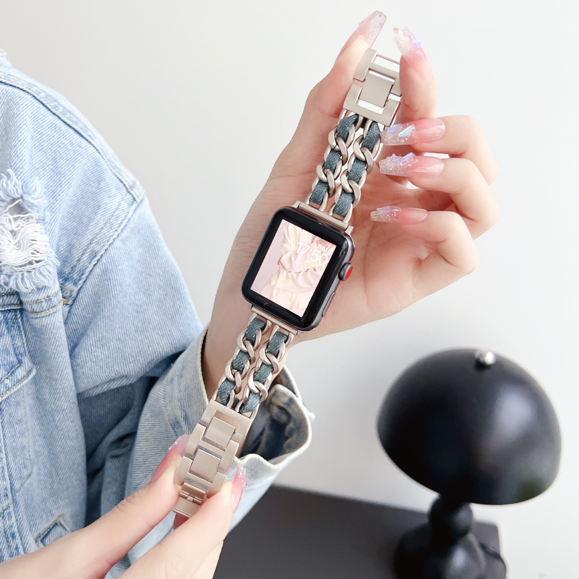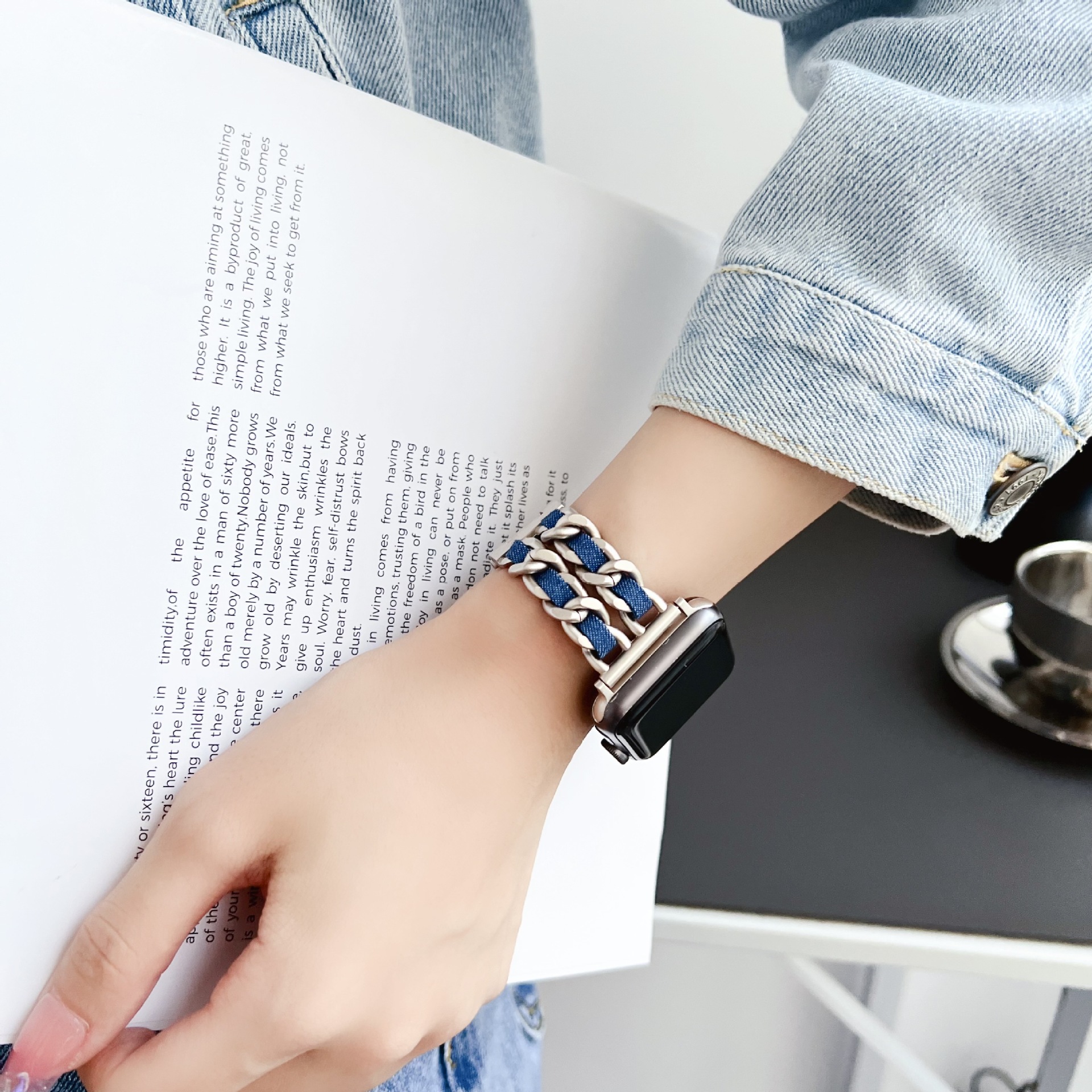 초 새로운 데님 애플 스테인레스 스틸 데님 스트랩에 적합한 인터넷 유명인 샤넬 스타일스토어 가기