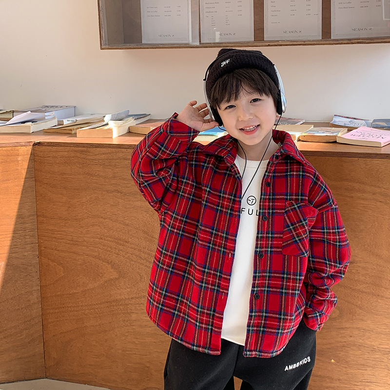[클리어아웃 세일] Aimo Beibei 아동용 두꺼운 벨벳 코튼 체크 무늬 바닥 셔츠 아기 따뜻한 재킷스토어 가기