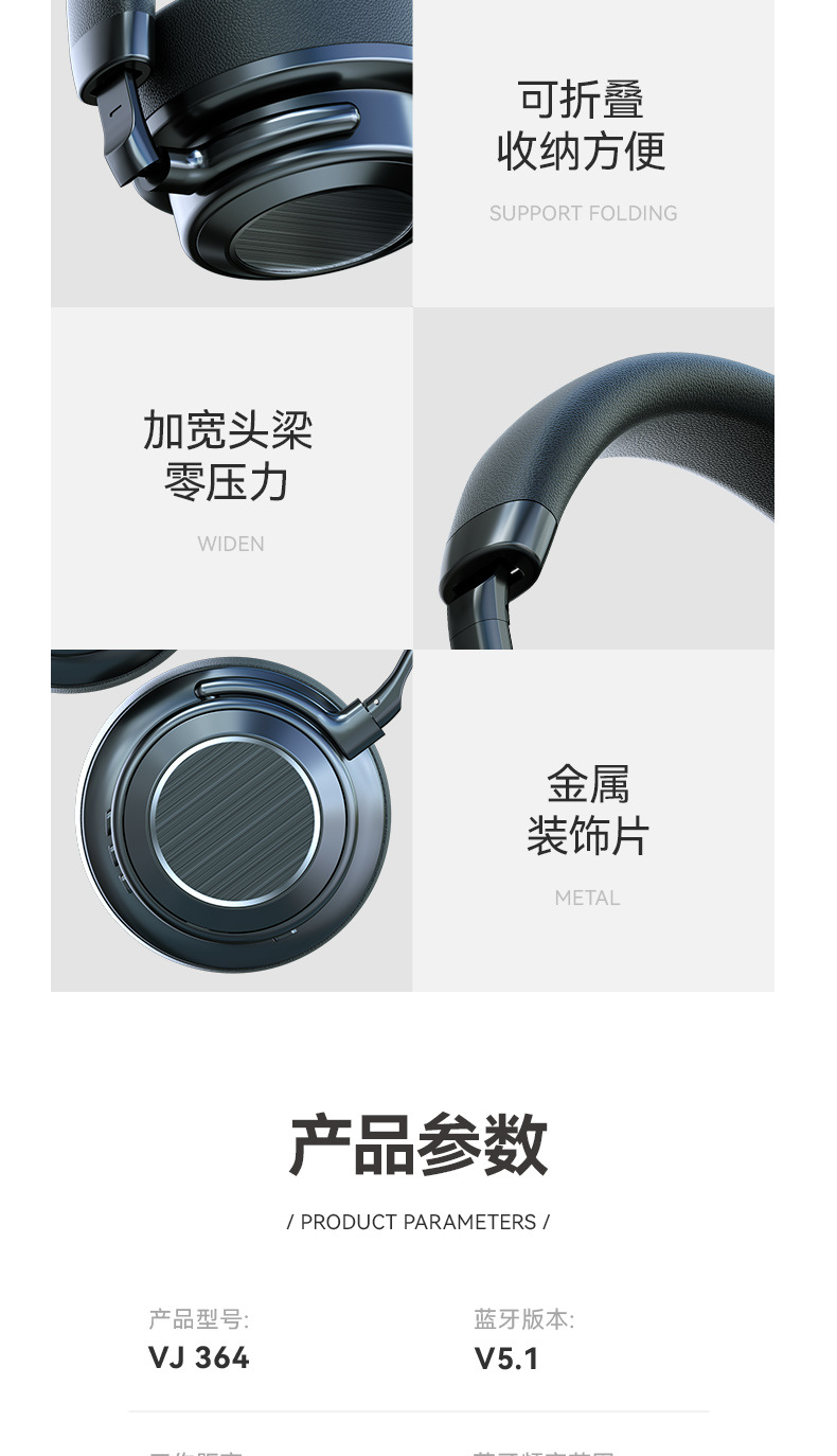 국경 간 폭발 금속 블루투스 헤드셋 VJ364 ANC 소음 감소 블루투스 헤드셋 5.3 스포츠 올 매치 긴 내구성스토어 가기