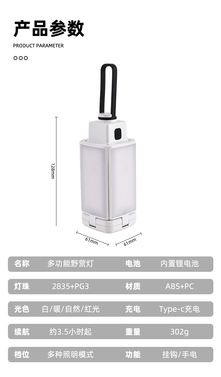 야외 접이식 캠핑 램프 따뜻한 조명 캠핑 램프 USB 충전 긴 내구성 휴대용 텐트 램프 끈스토어 가기