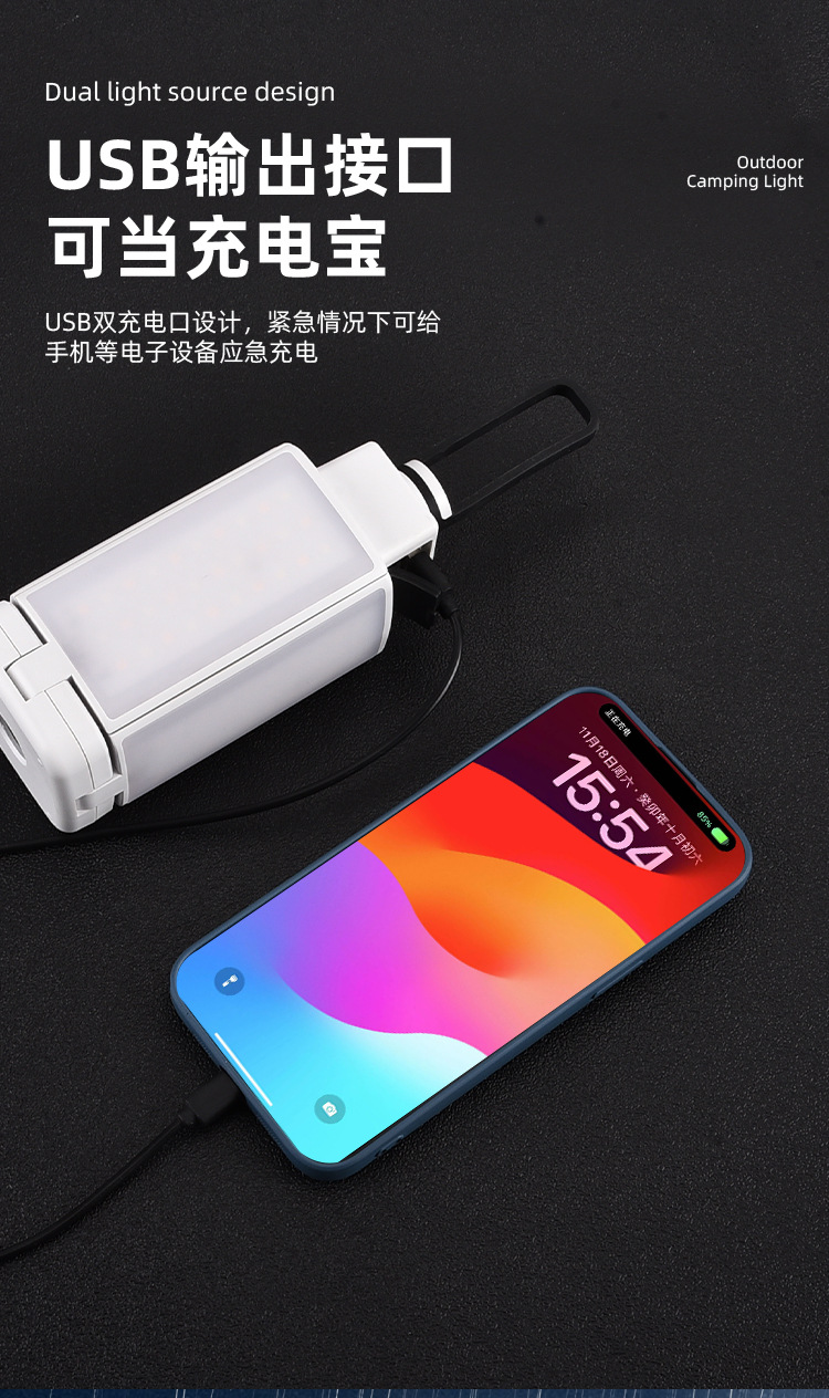 야외 접이식 캠핑 램프 따뜻한 조명 캠핑 램프 USB 충전 긴 내구성 휴대용 텐트 램프 끈