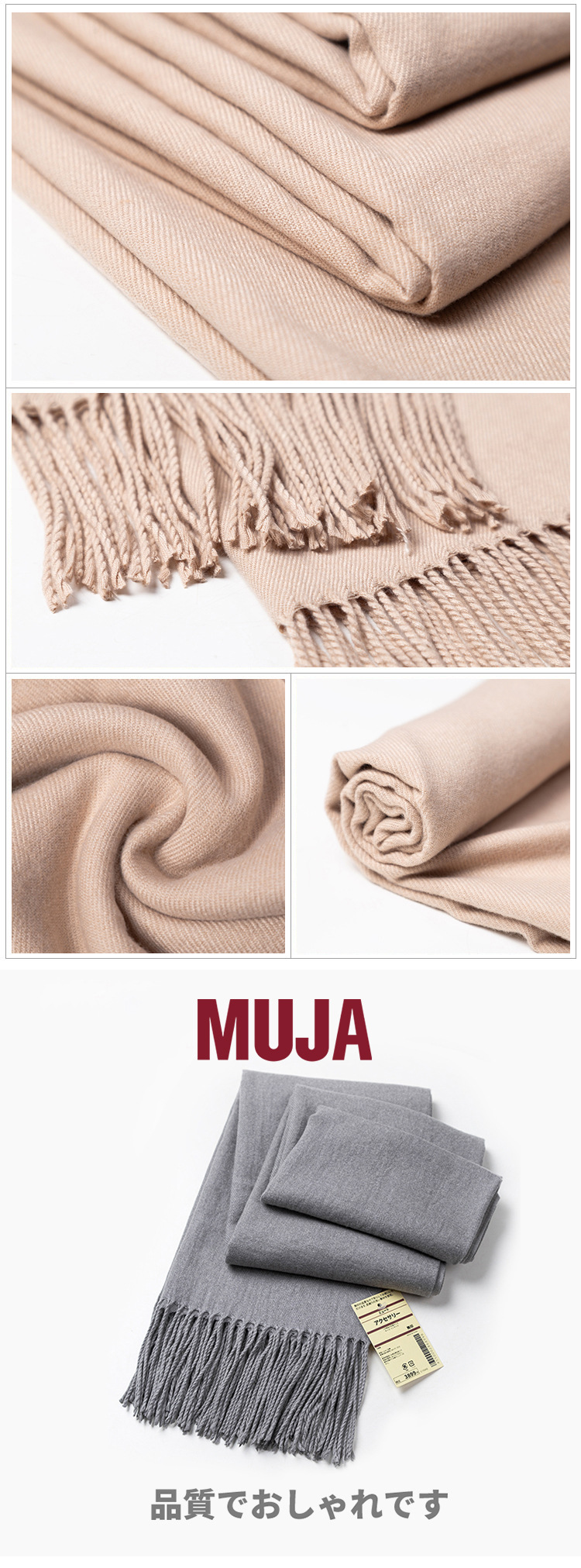일본의 인쇄되지 않은 울 스카프 여성의 겨울 부드러운 일본 스타일 단색 간단한 캐시미어 스카프 고급 남성용 그레이스토어 가기