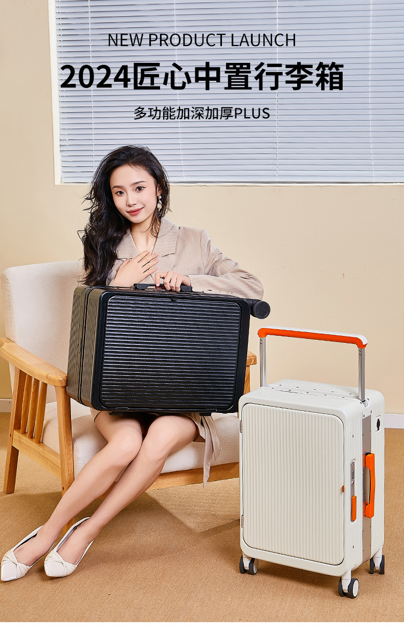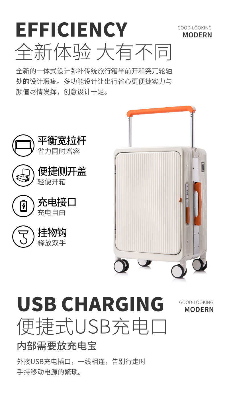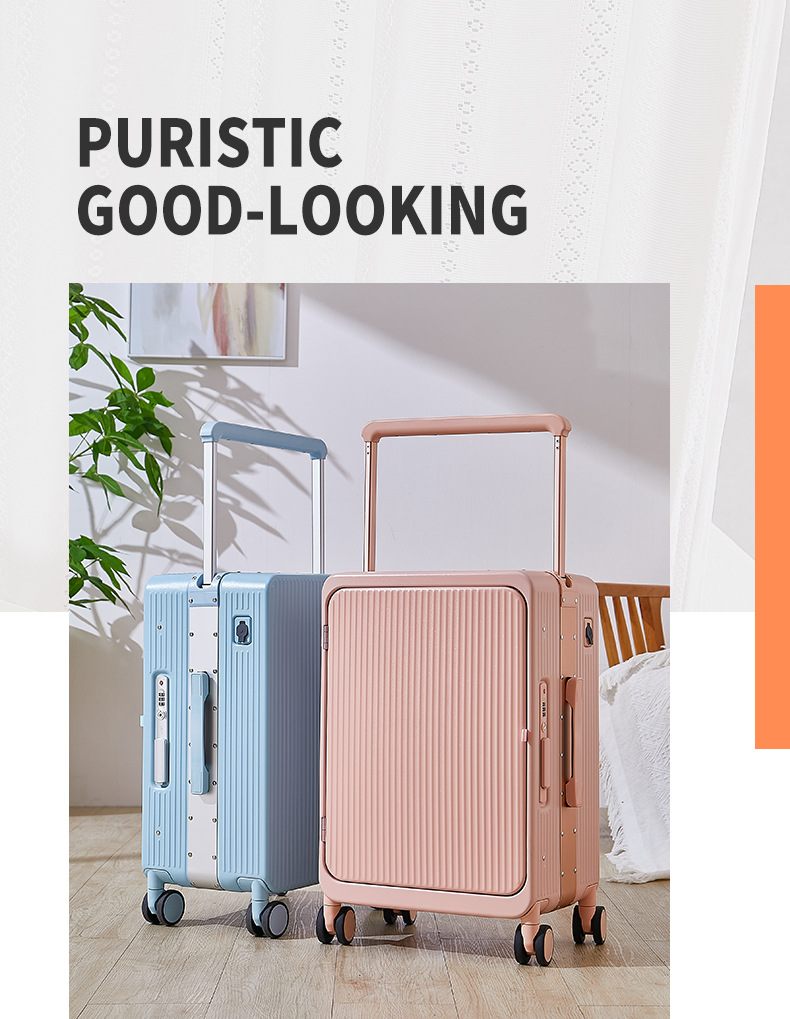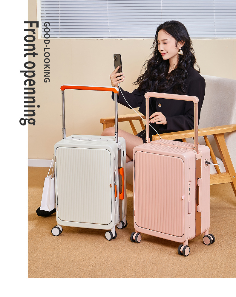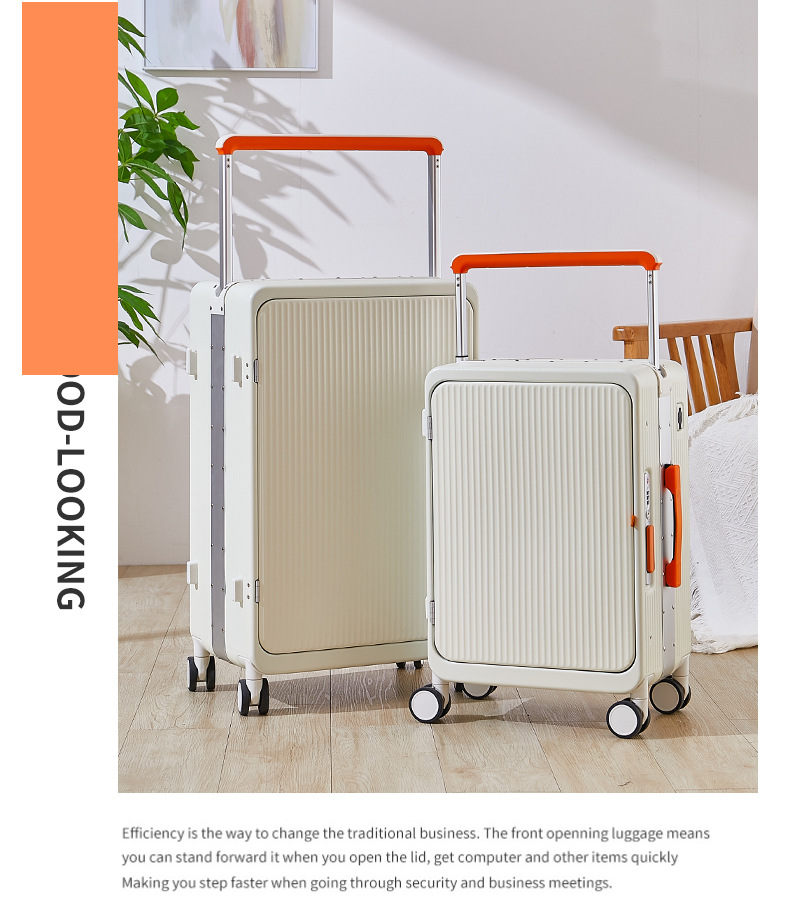 새로운 넓은 타이로드 보딩 박스 알루미늄 프레임 트롤리 케이스 유니버설 휠 가방 개성 프론트 비즈니스 오피스 가방