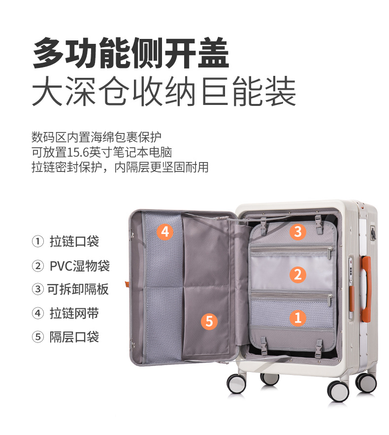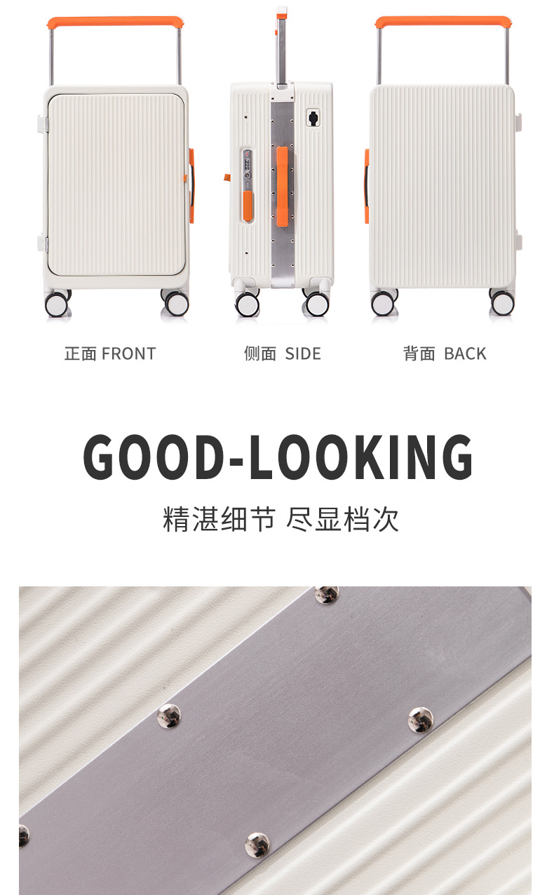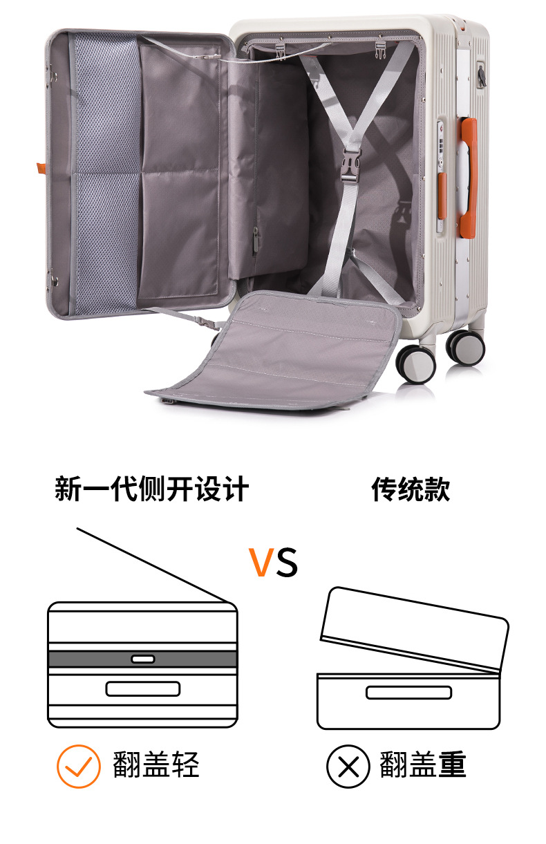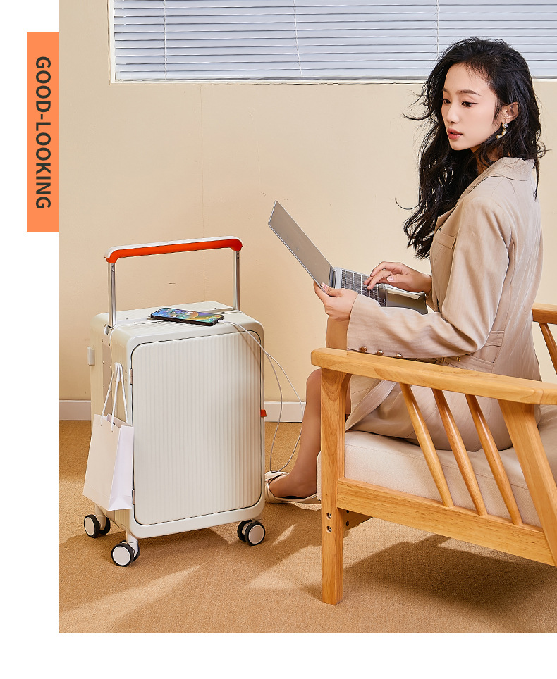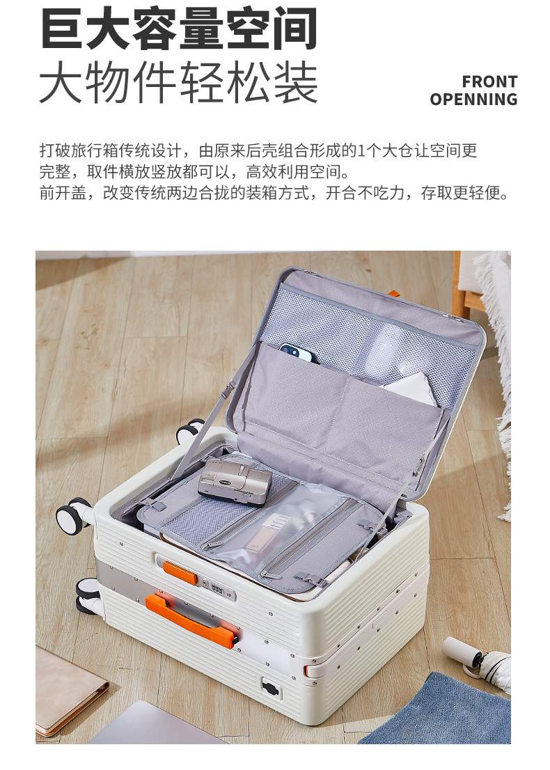새로운 넓은 타이로드 보딩 박스 알루미늄 프레임 트롤리 케이스 유니버설 휠 가방 개성 프론트 비즈니스 오피스 가방