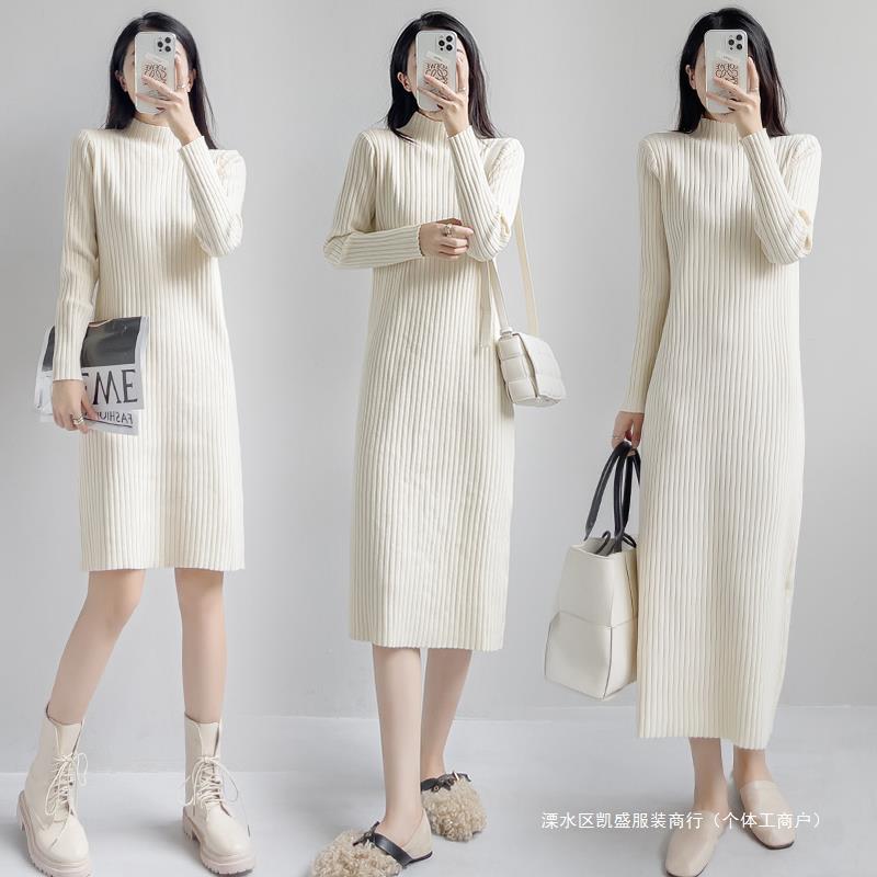 가을과 겨울의 새로운 스타일 코트 느슨한 긴 소매 안쪽 중간 길이의 바닥 셔츠 무릎 니트 원피스스토어 가기