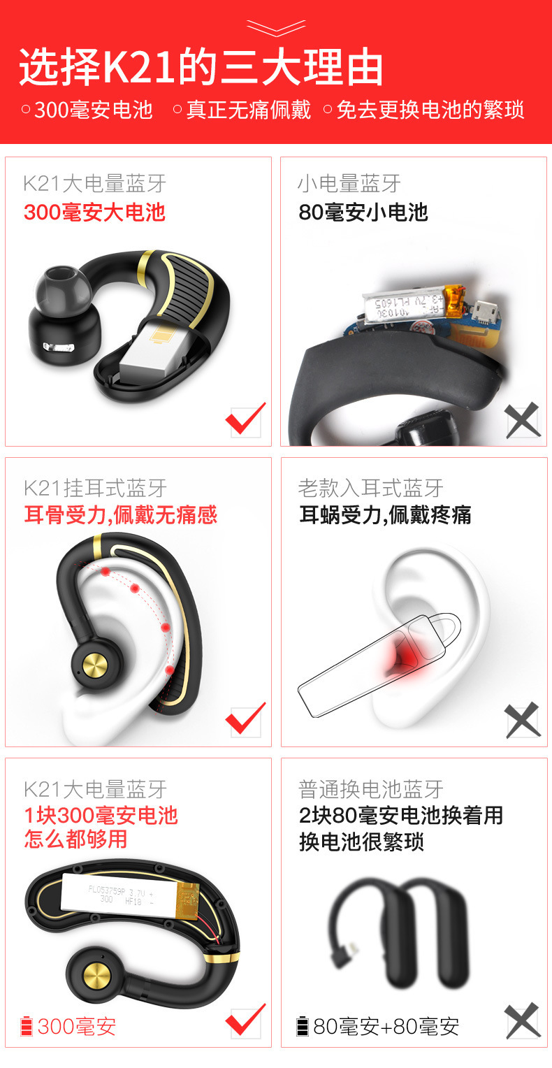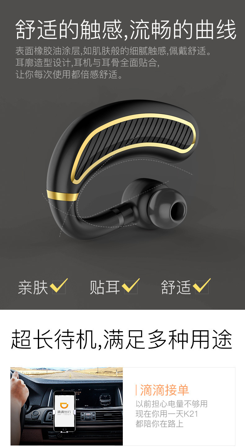 해외 k21 블루투스 헤드셋 울트라 롱 대기 HD 유니버설 이어 마운트 전보 이름 운전 전화스토어 가기