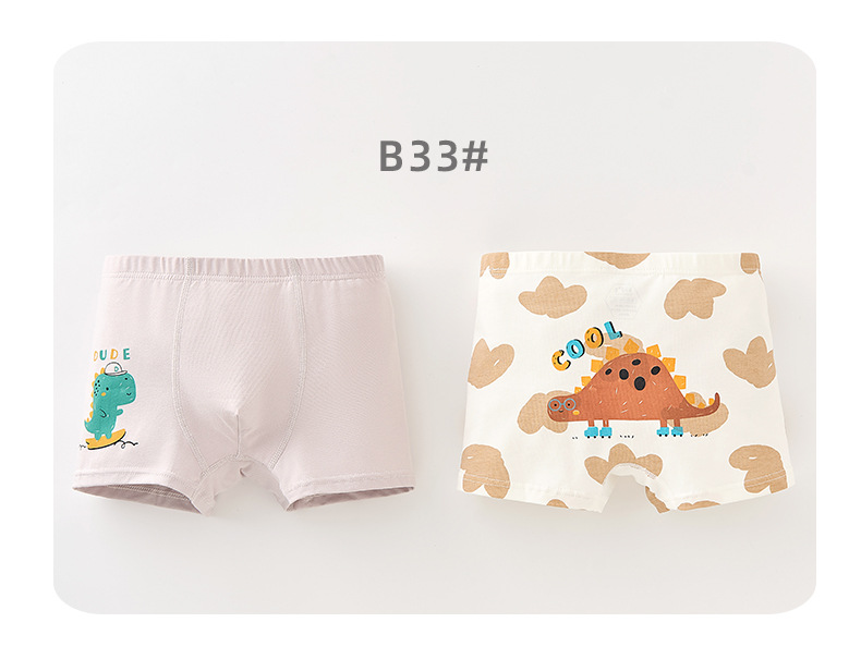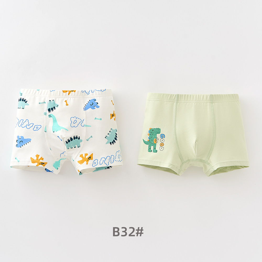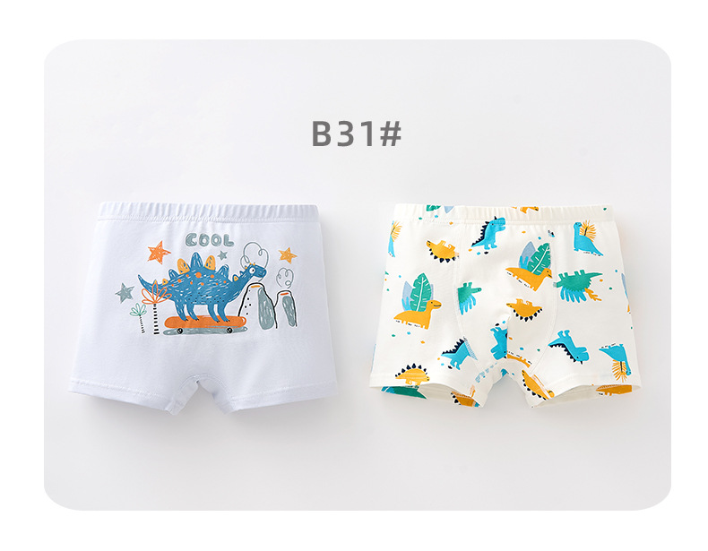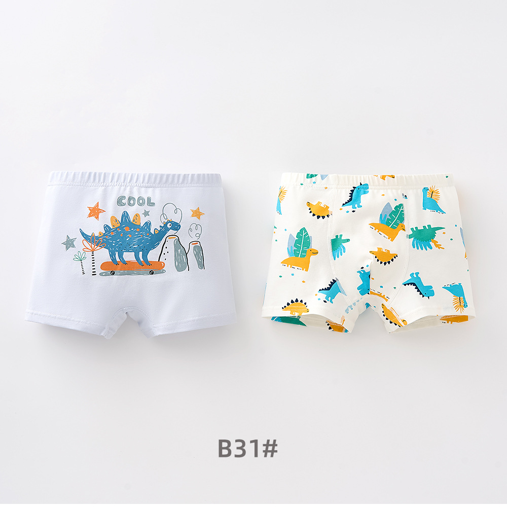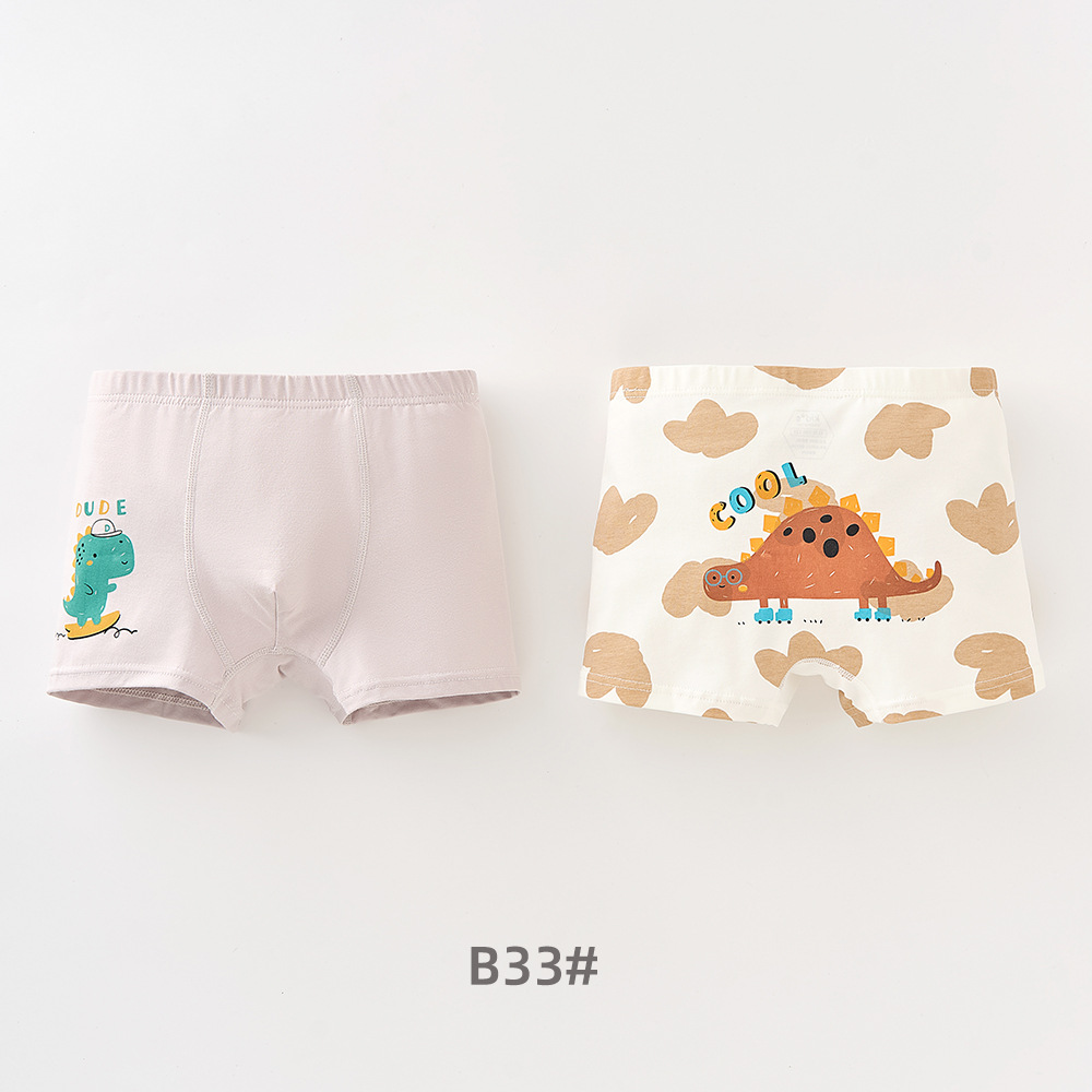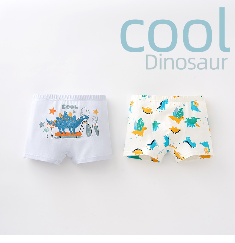남학생의 면화 속옷 두 봉지 어린이 복서 반바지 소년의 통기성 안감 귀여운 공룡 패턴