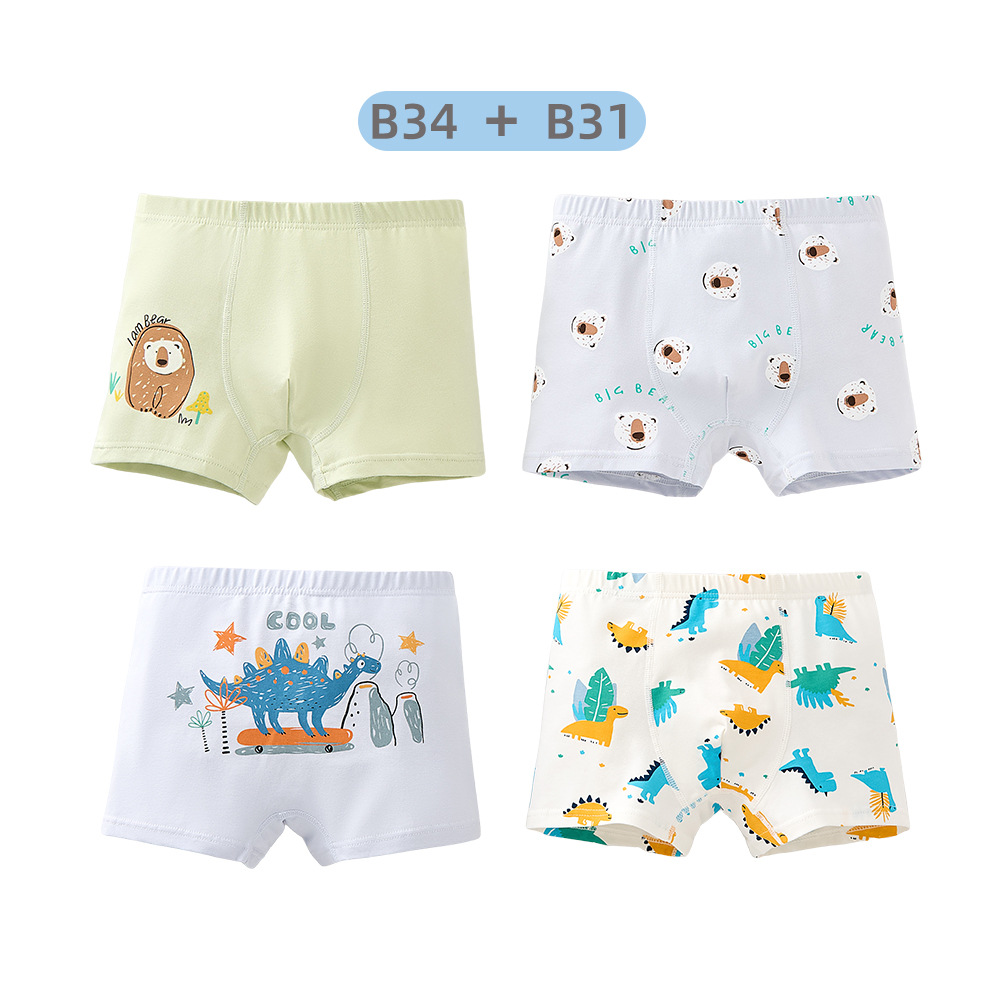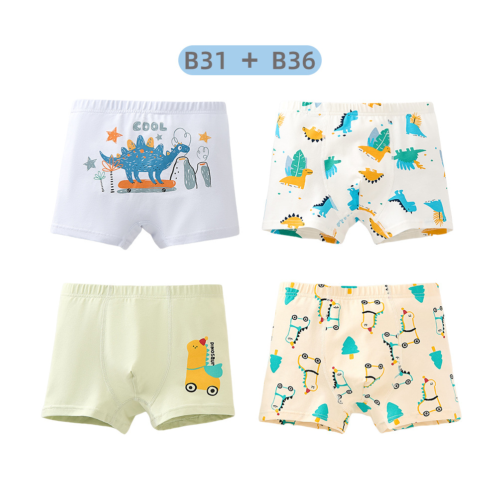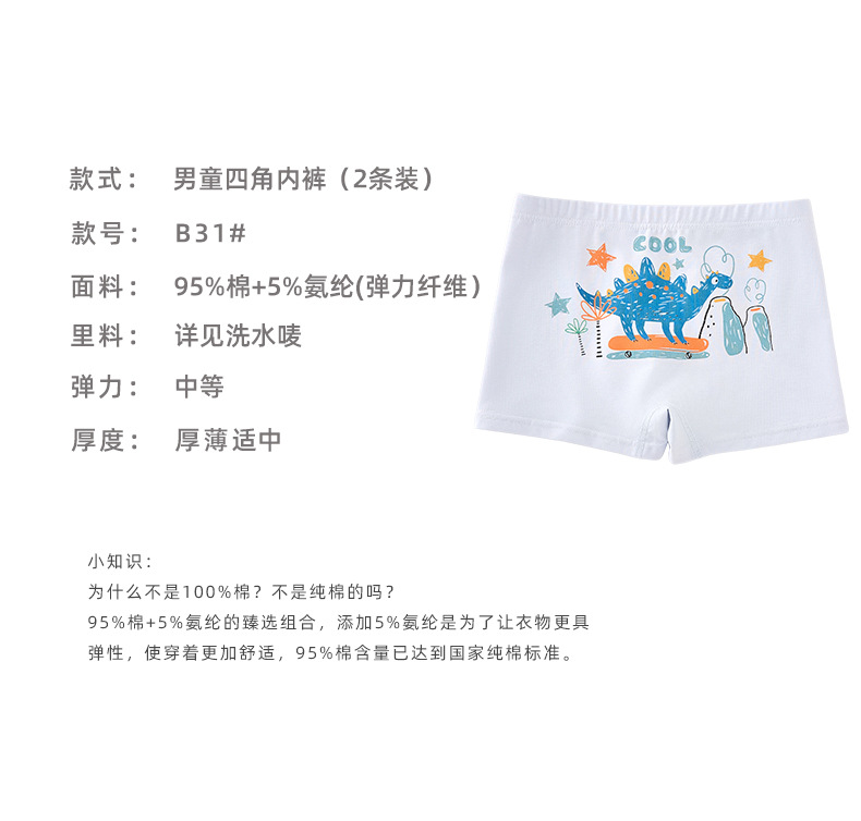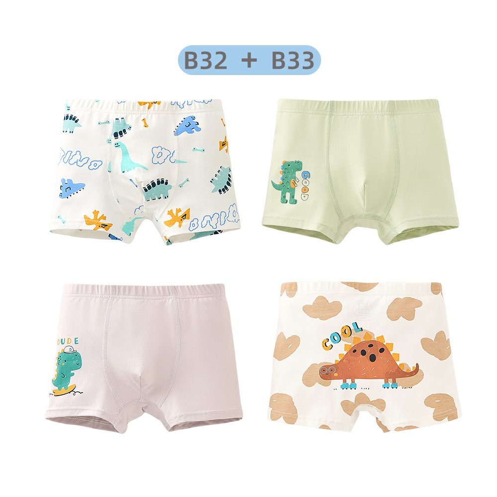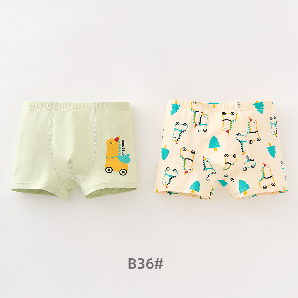 남학생의 면화 속옷 두 봉지 어린이 복서 반바지 소년의 통기성 안감 귀여운 공룡 패턴