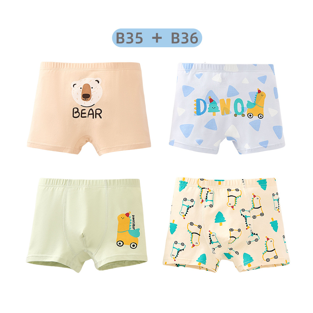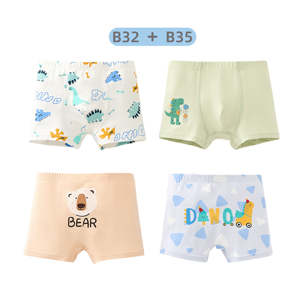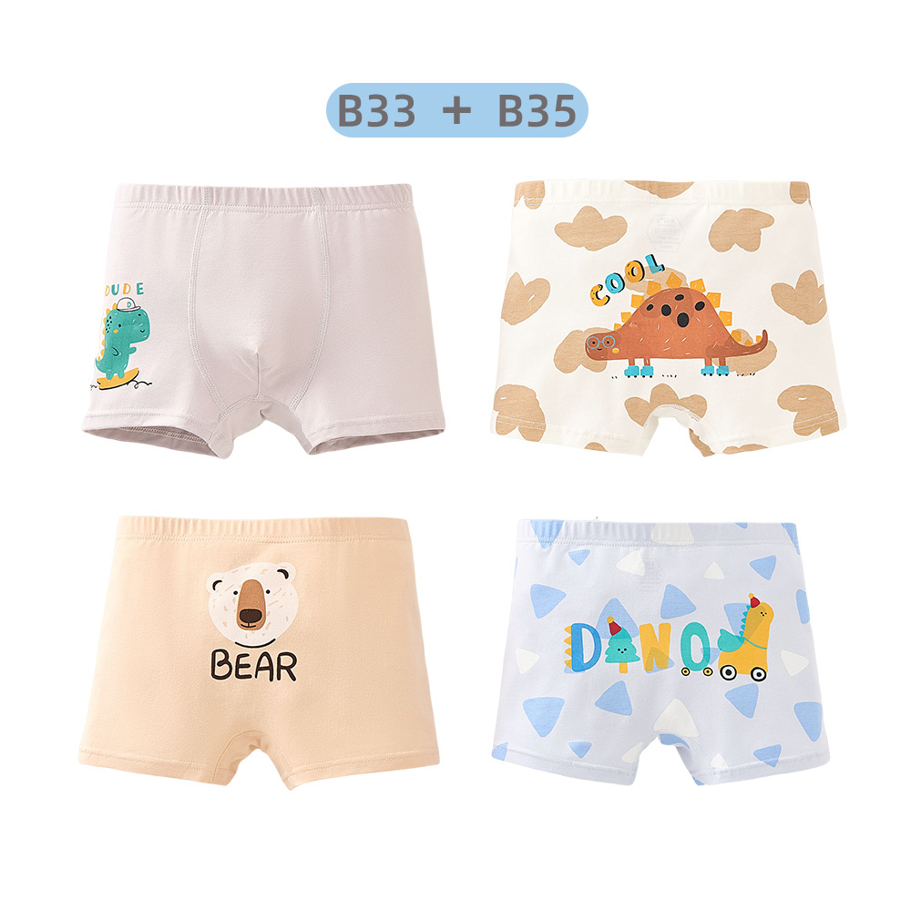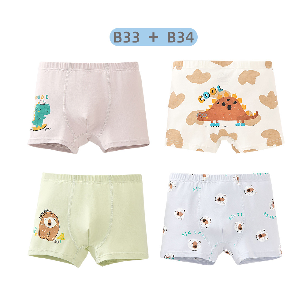 남학생의 면화 속옷 두 봉지 어린이 복서 반바지 소년의 통기성 안감 귀여운 공룡 패턴