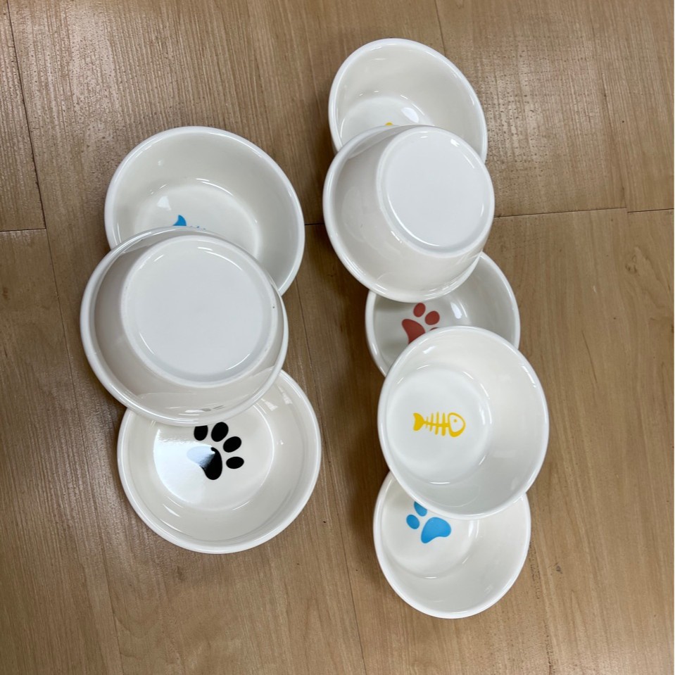 재고 애완 동물 세라믹 그릇 간단한 스타일 스몰 사이즈 그릇 더블 그릇 물 분지 넓은 측면 사용 가능한 랙 고양이 그릇 고양이 먹이 분지스토어 가기