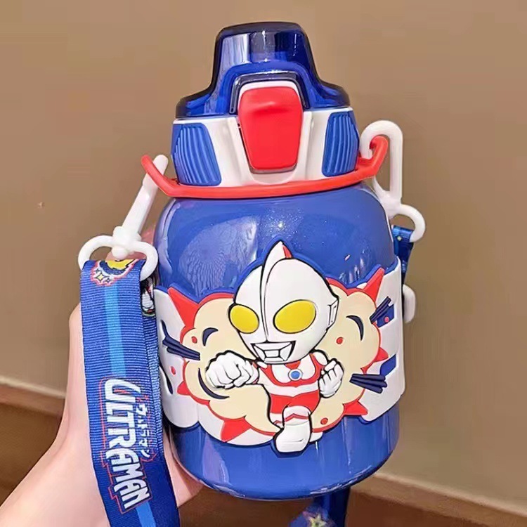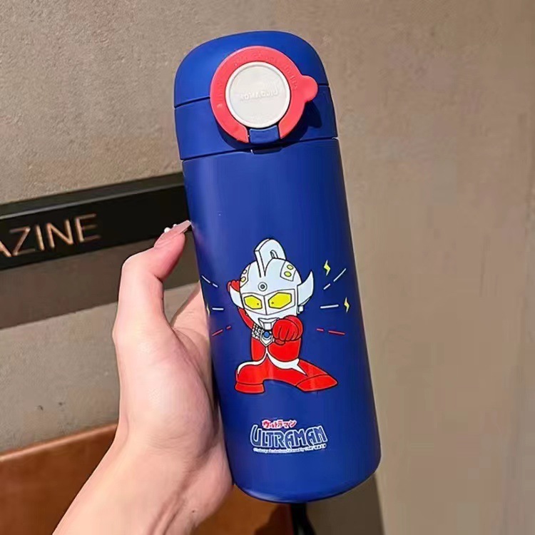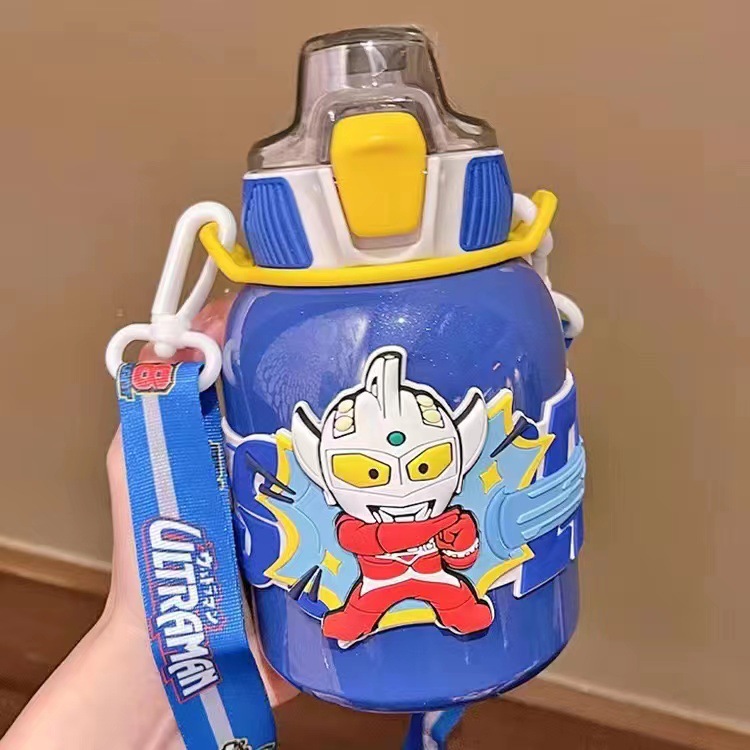 남학생을위한 울트라 맨 어린이 보온병 컵 베이비 푸드 그레이드 316 초등학생 주전자 밀짚 컵