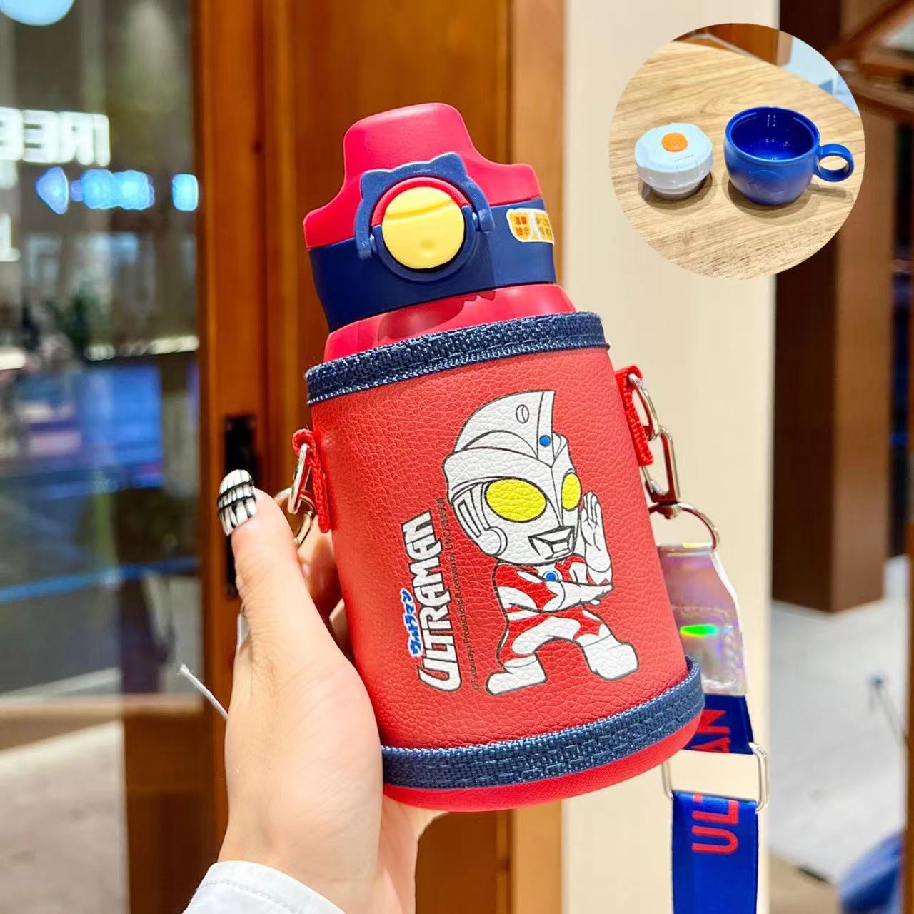 남학생을위한 울트라 맨 어린이 보온병 컵 베이비 푸드 그레이드 316 초등학생 주전자 밀짚 컵스토어 가기