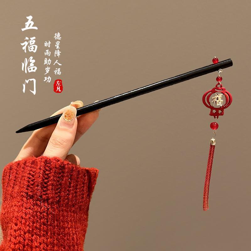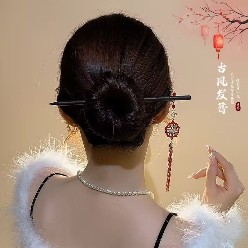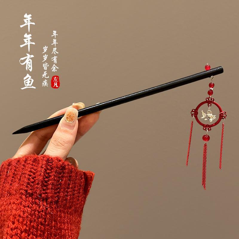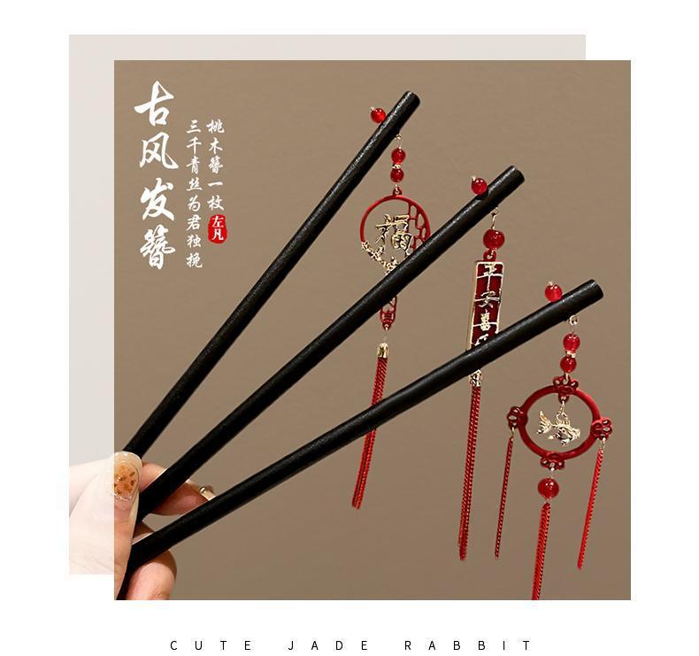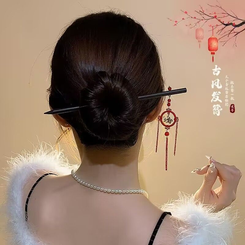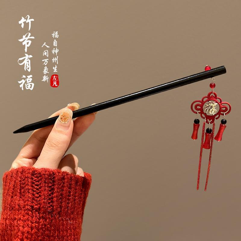 새로운 스타일의 고급 빨간색 술 단계 흔들 나무 머리핀 모조 에보니 머리 머리핀 새해 축제 액세서리 헤어 액세서리