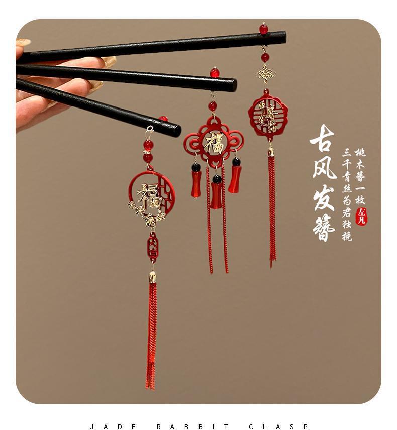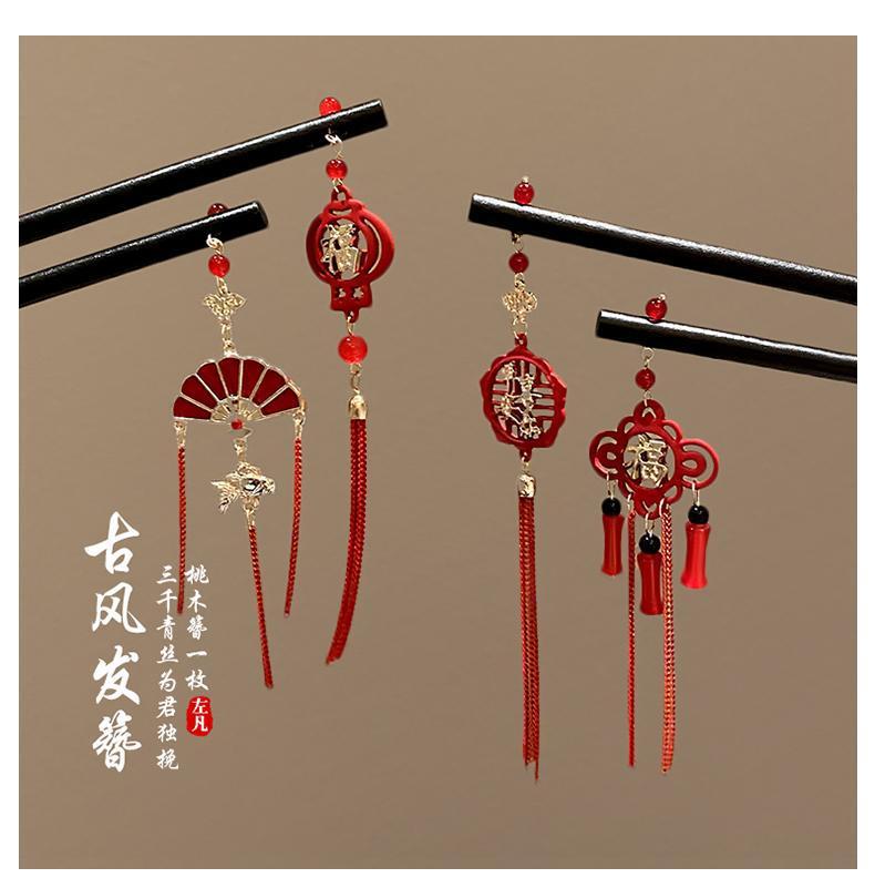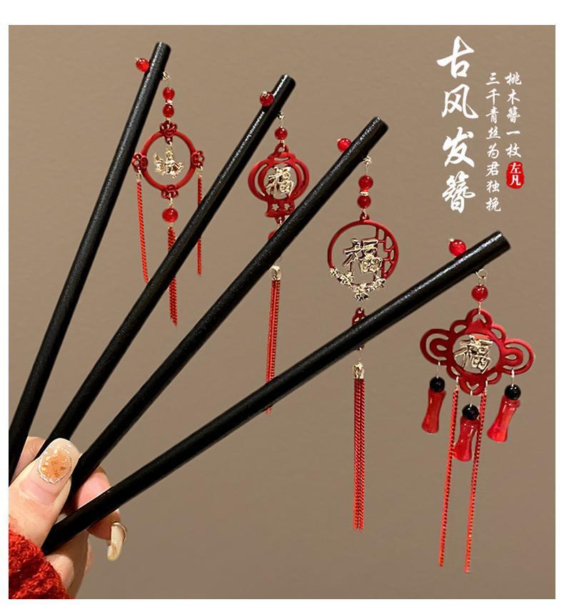 새로운 스타일의 고급 빨간색 술 단계 흔들 나무 머리핀 모조 에보니 머리 머리핀 새해 축제 액세서리 헤어 액세서리스토어 가기