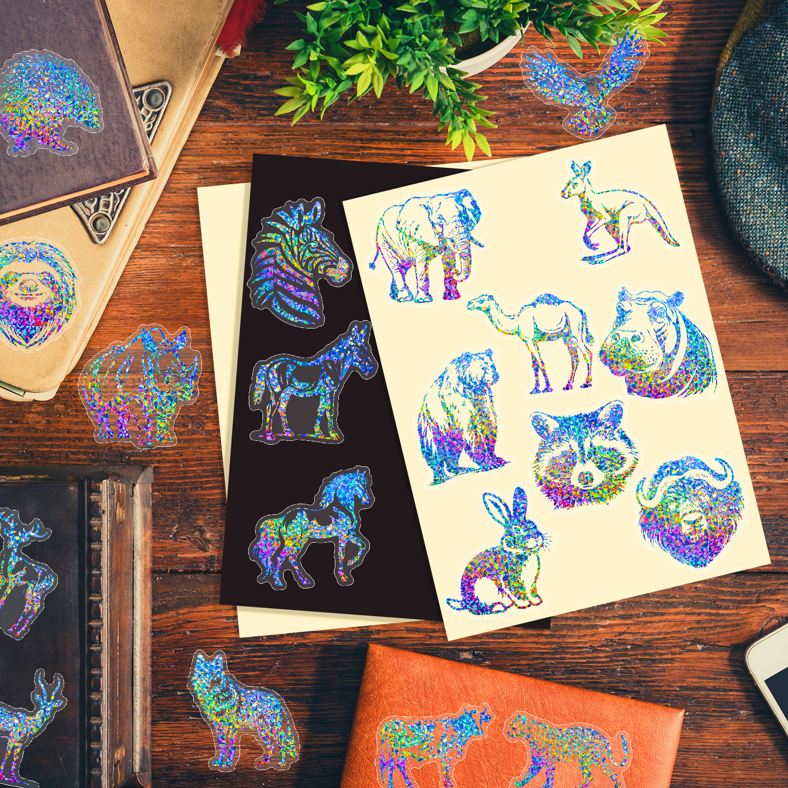 50 귀여운 동물 사슴 실버 레이저 스티커 국경 아마존 반짝이는 유치원 보상 레이저 스티커스토어 가기