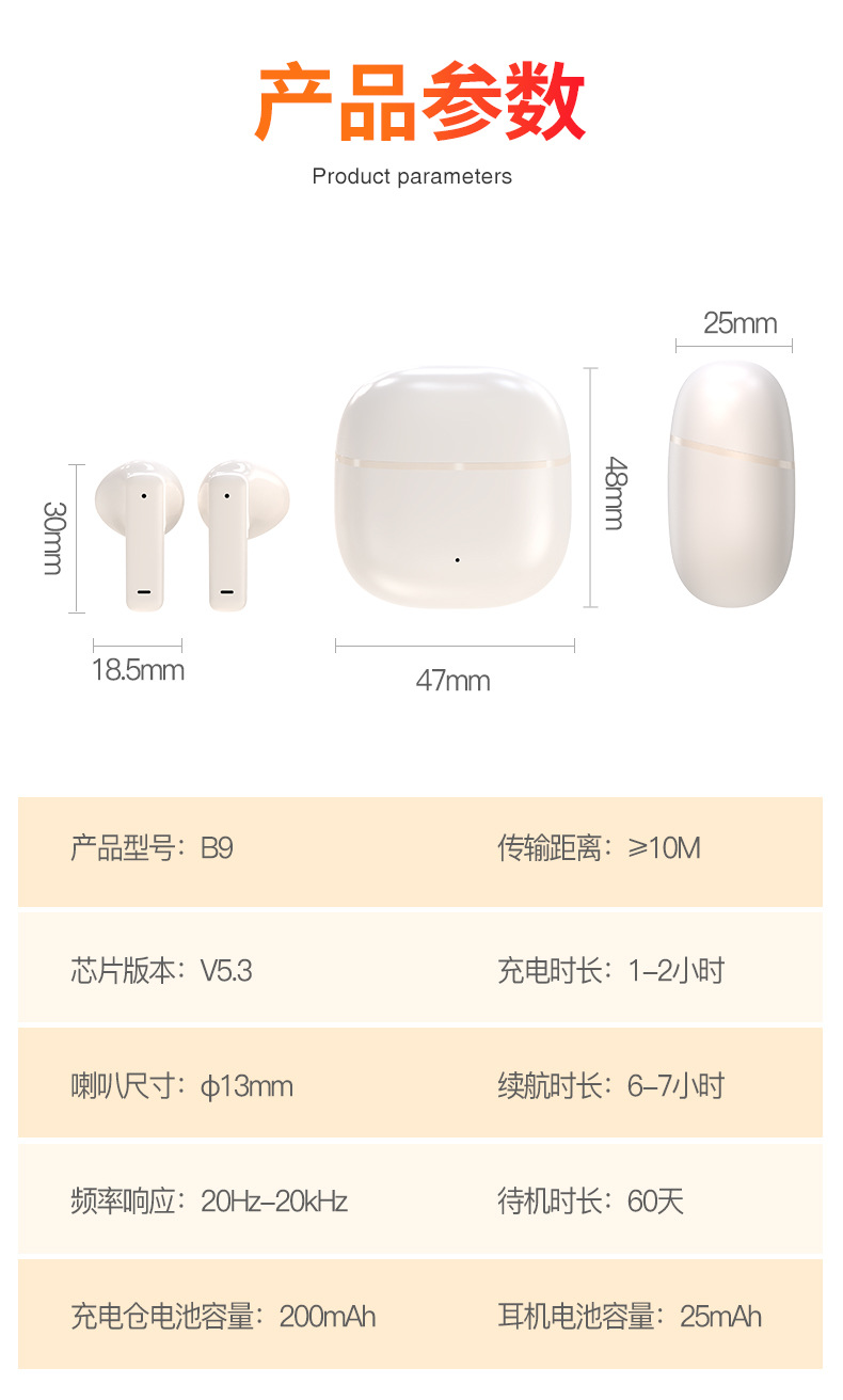 국경 간 새로운 B9 개인 모델 블루투스 헤드셋 5.3 HD 통화 무선 귀 소음 감소 게임 스포츠 헤드셋