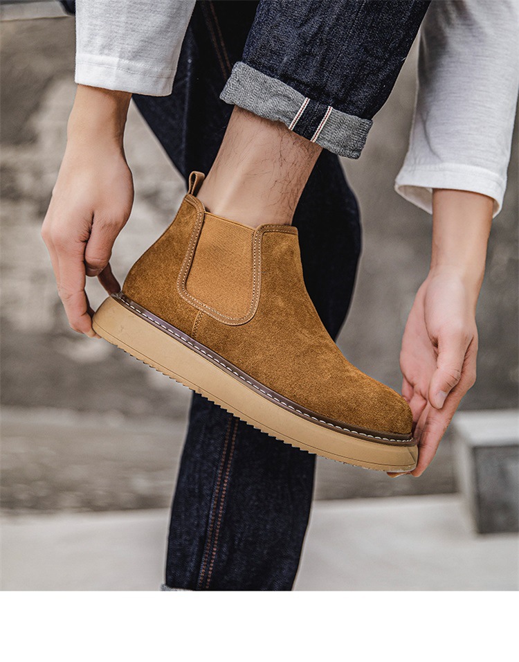 가을과 겨울 마틴 부츠 정품 가죽 스웨이드 캐주얼 짧은 부츠 남성 복고풍 하이 탑 바지 신발 두꺼운 밑창 미드 탑 가죽 부츠 남성