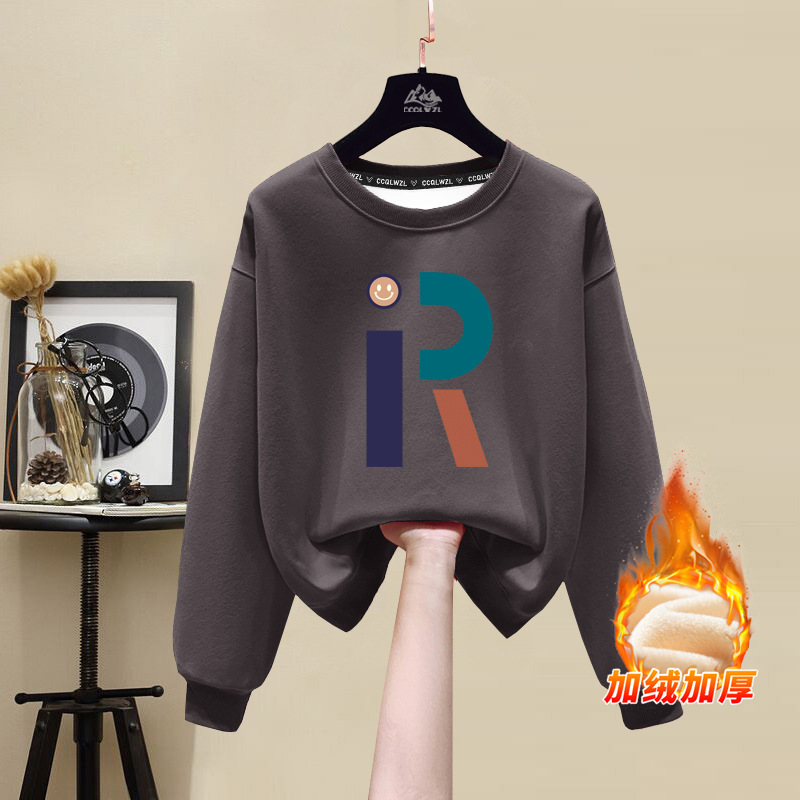 2024 새로운 라운드 넥 스웨트 셔츠 여성 한국식 인스 타 그램 스타일 가을과 겨울 코튼 기모 두꺼운 느슨한 캐주얼 대형 탑스토어 가기