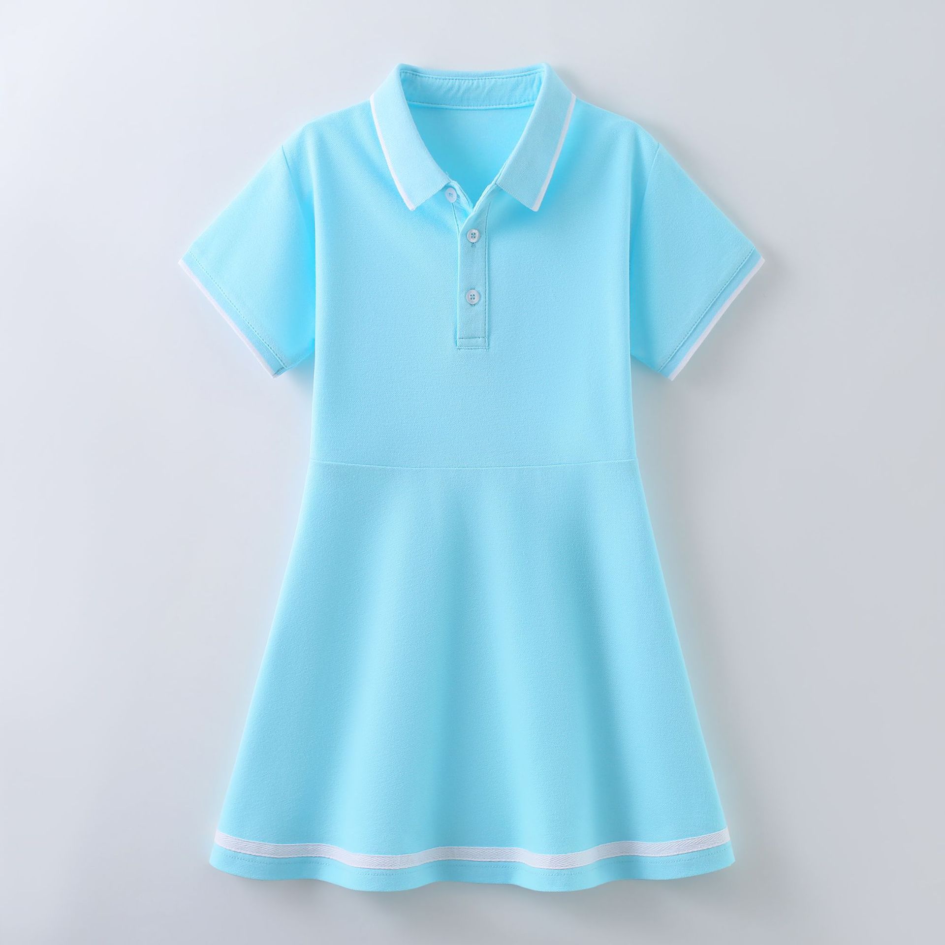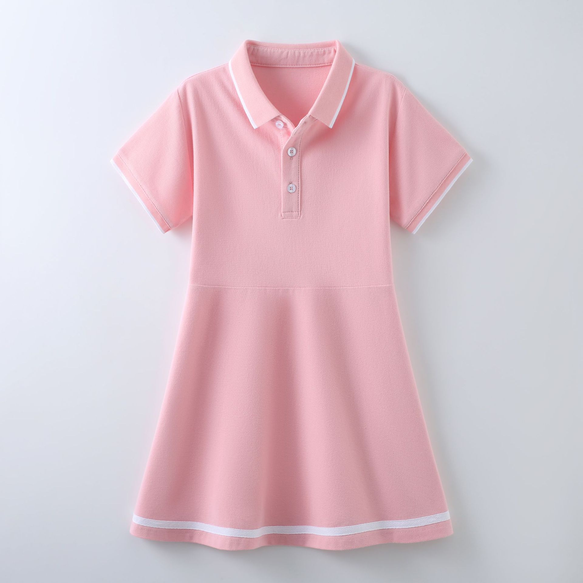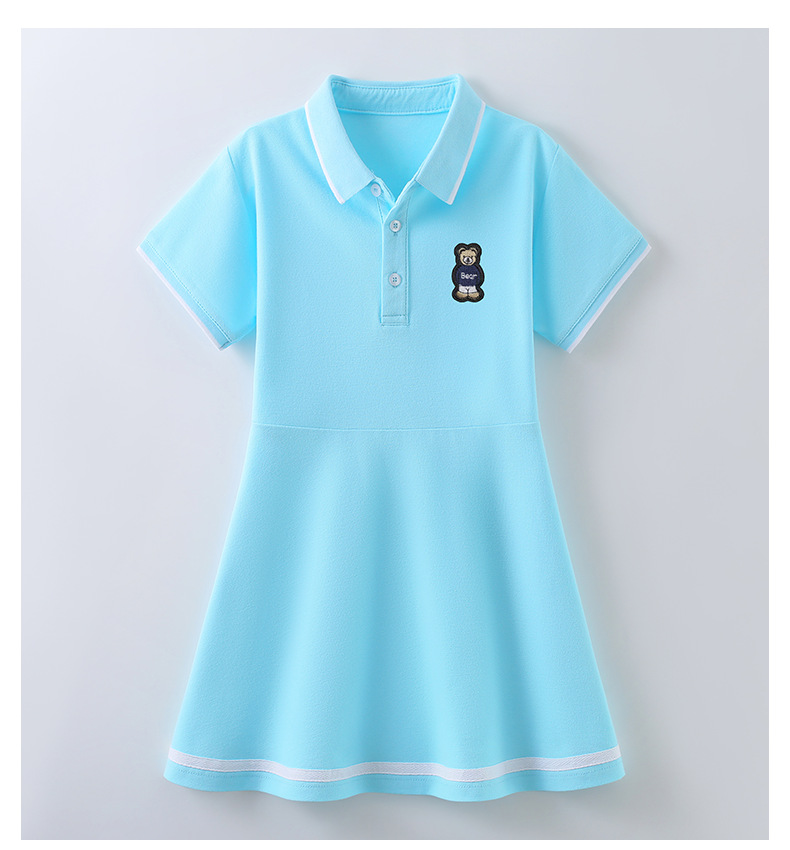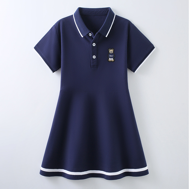 여자 폴로 원피스 여름 새로운 중형 및 대형 어린이 소녀 반팔 공주 원피스 서양식 어린이 스커트 A 라인 스커트