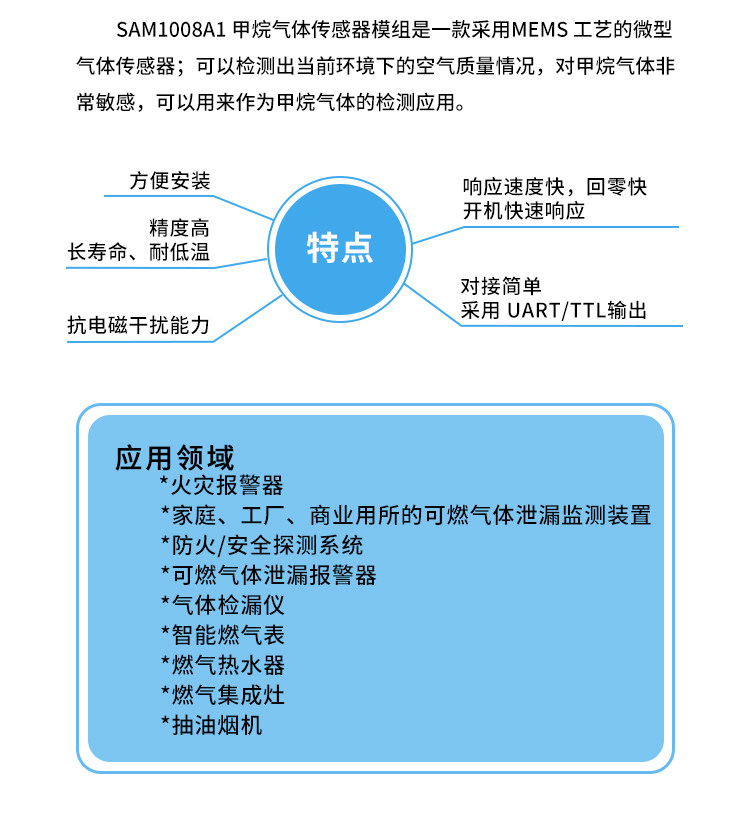 SAM1008A 메탄 가스 센서 모듈 가연성 가스 누출 모니터 가스 액화 가스 감지