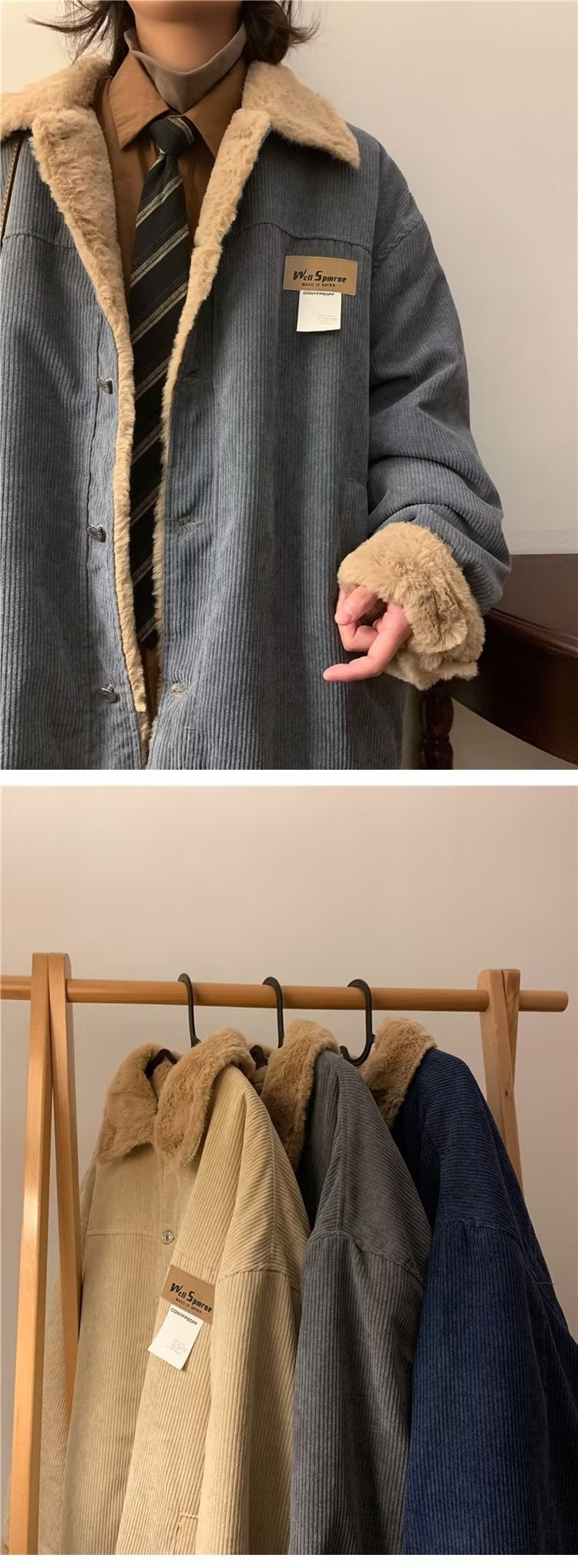 홍콩 스타일 복고풍 코듀로이 코튼 패딩 코트 남성과 여성을위한 겨울 한국 스타일 홍콩 스타일 느슨한 캐주얼 두껍게 된면 패딩 코트 트렌디